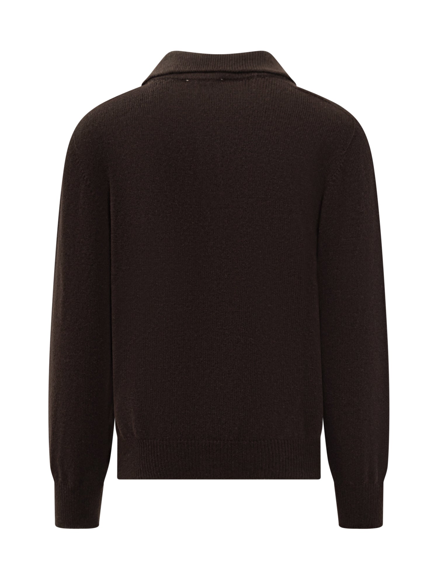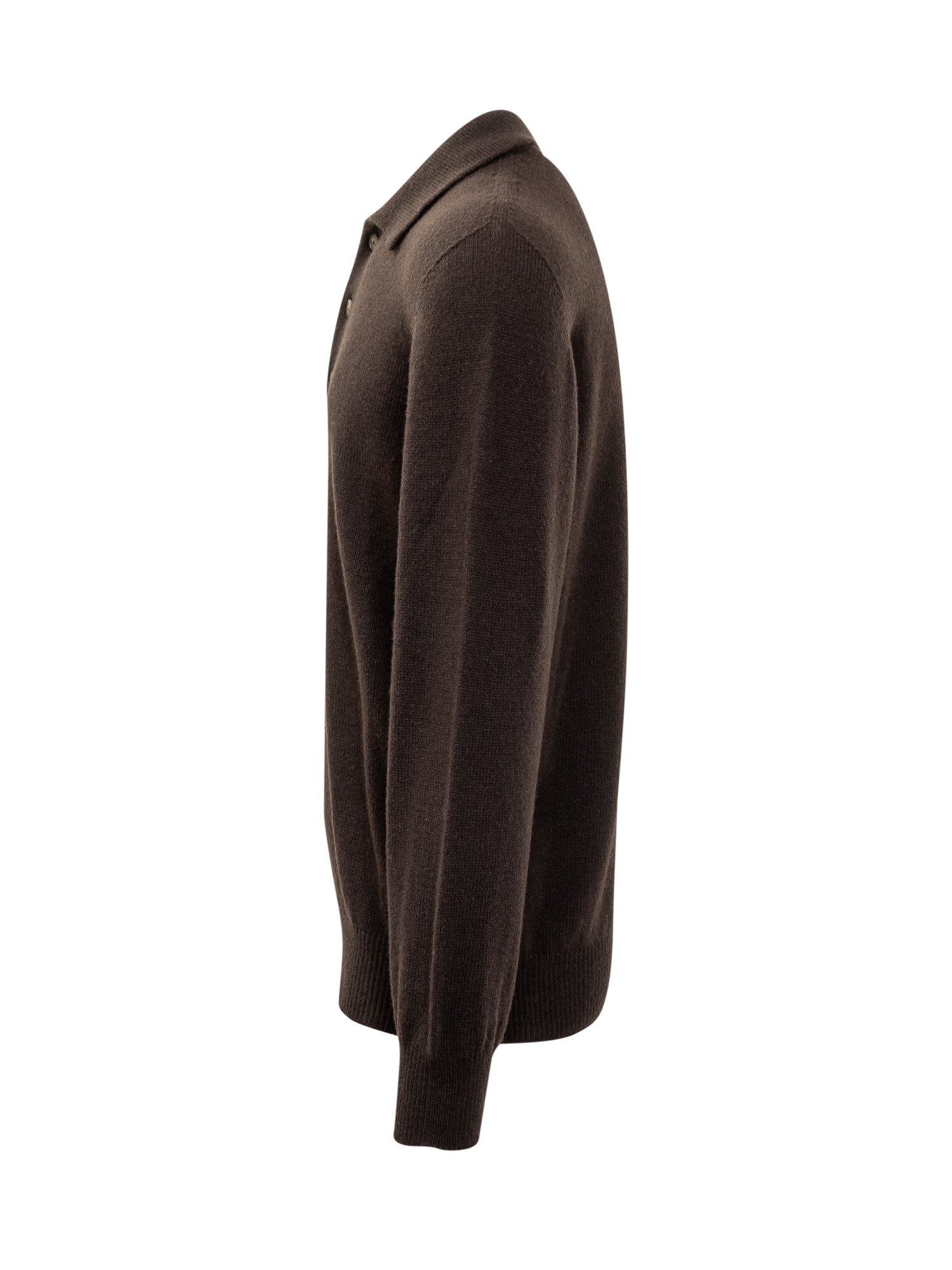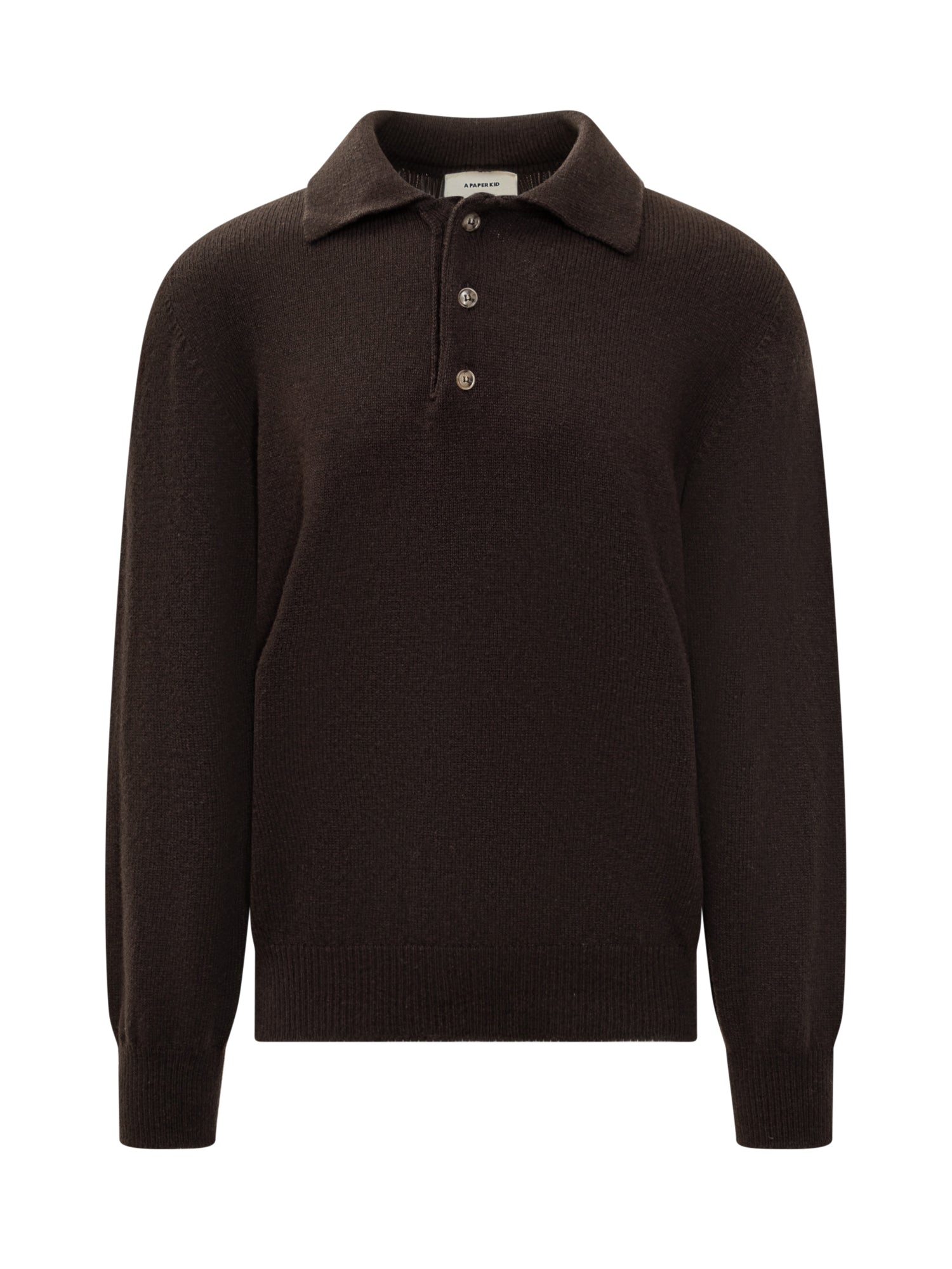 A Paper Kid brown wool polo sweater with long sleeves and three-button closure.