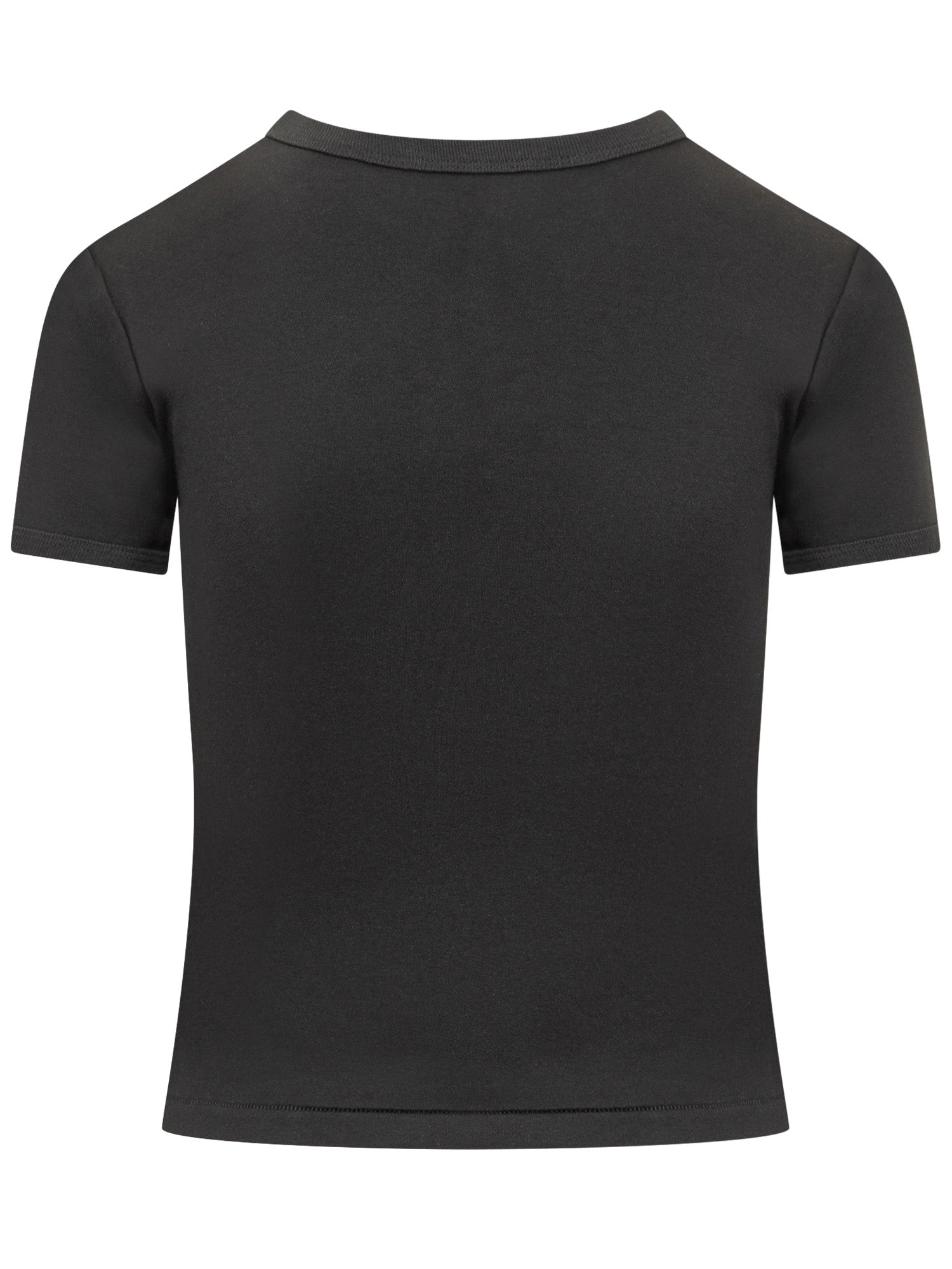 Slim fit t-shirt. Cropped effect. Ribbed collar and sleeves. Logo printed on the front.