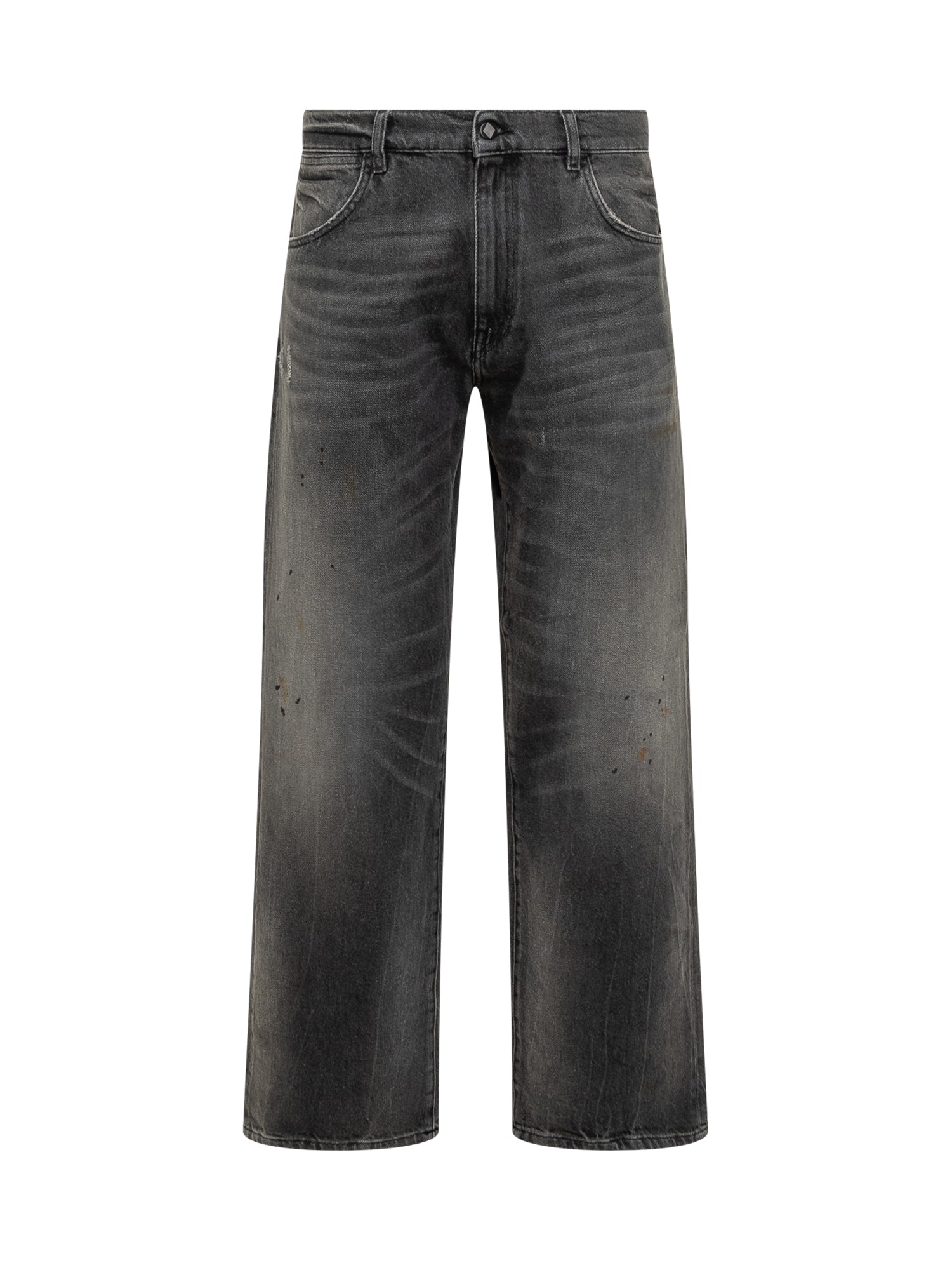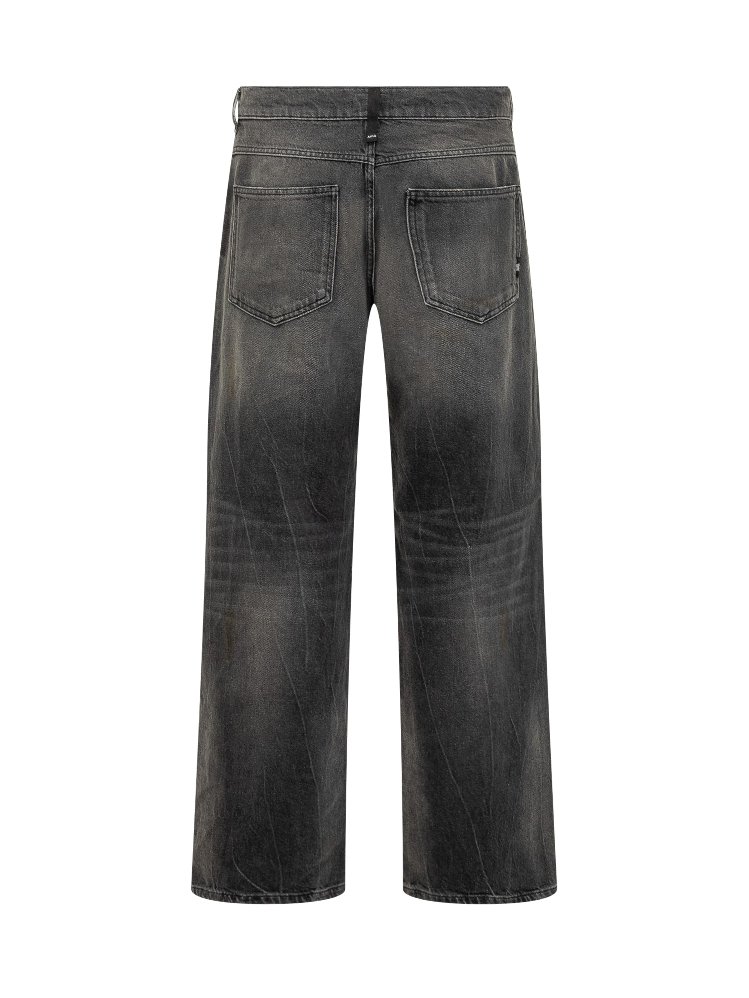 Amish James grey washed jeans with wide leg and subtle distressed details.