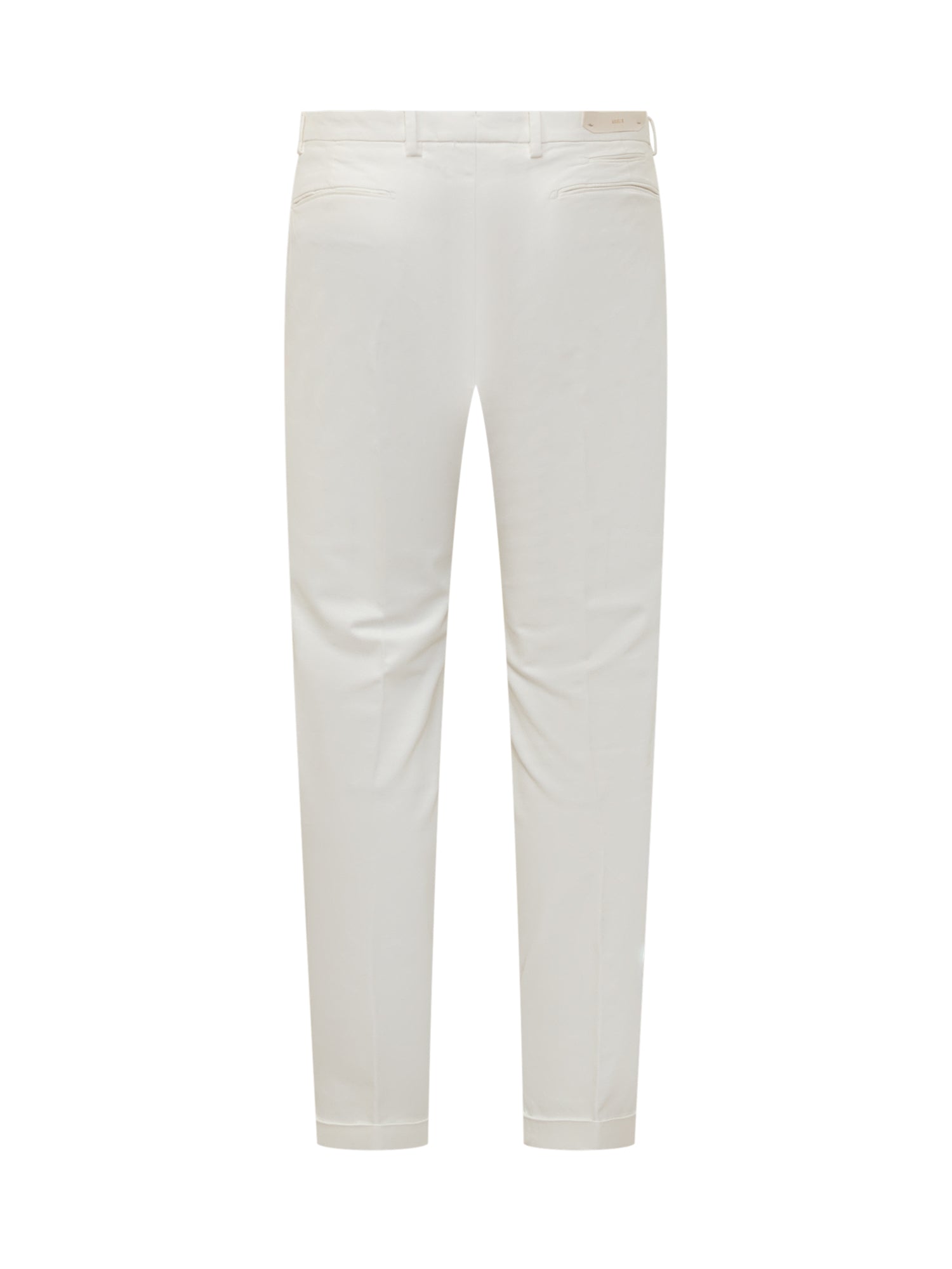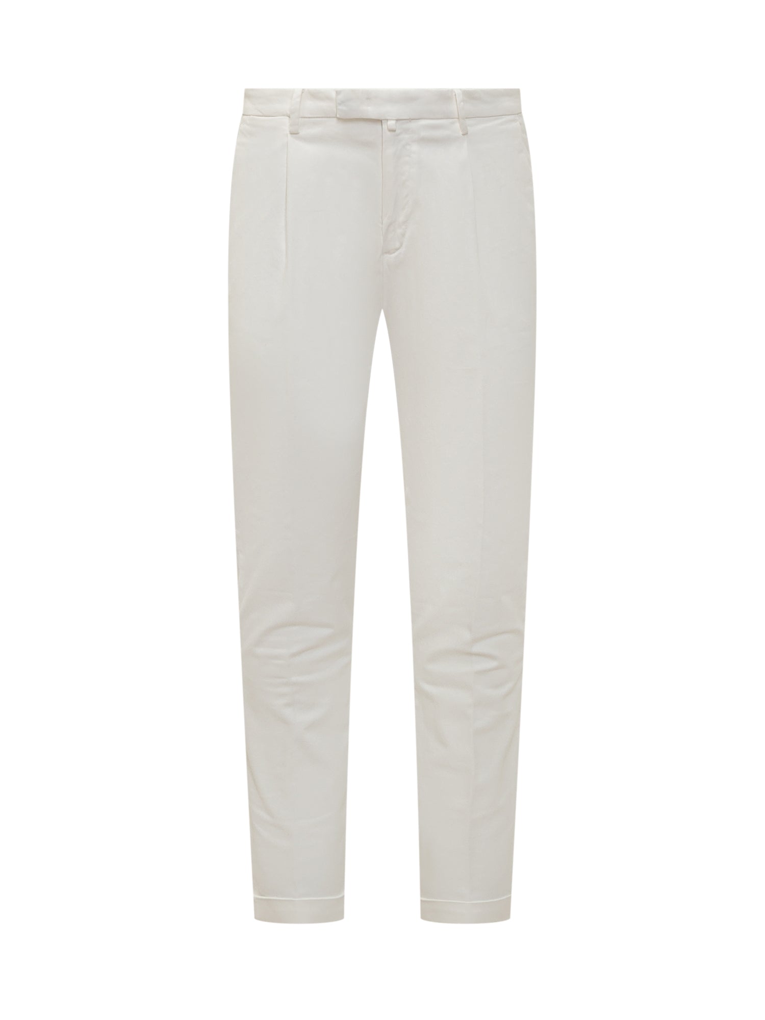 Briglia white cotton trousers featuring front pleats and a slim fit.