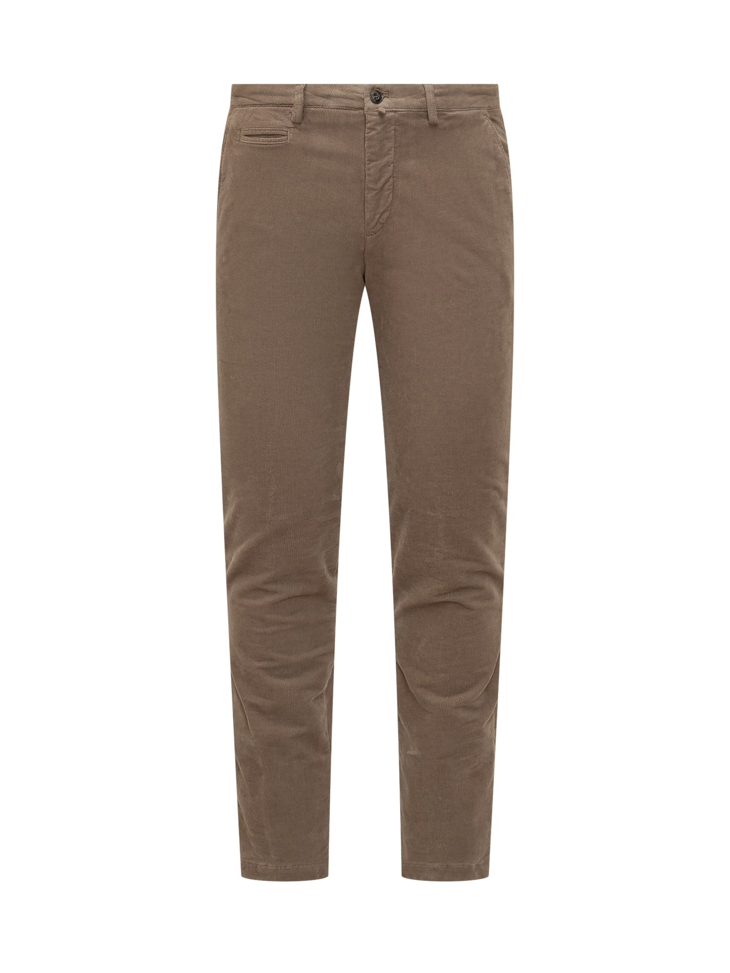 Briglia beige velvet trousers with a slim fit, side pockets, and button closure.