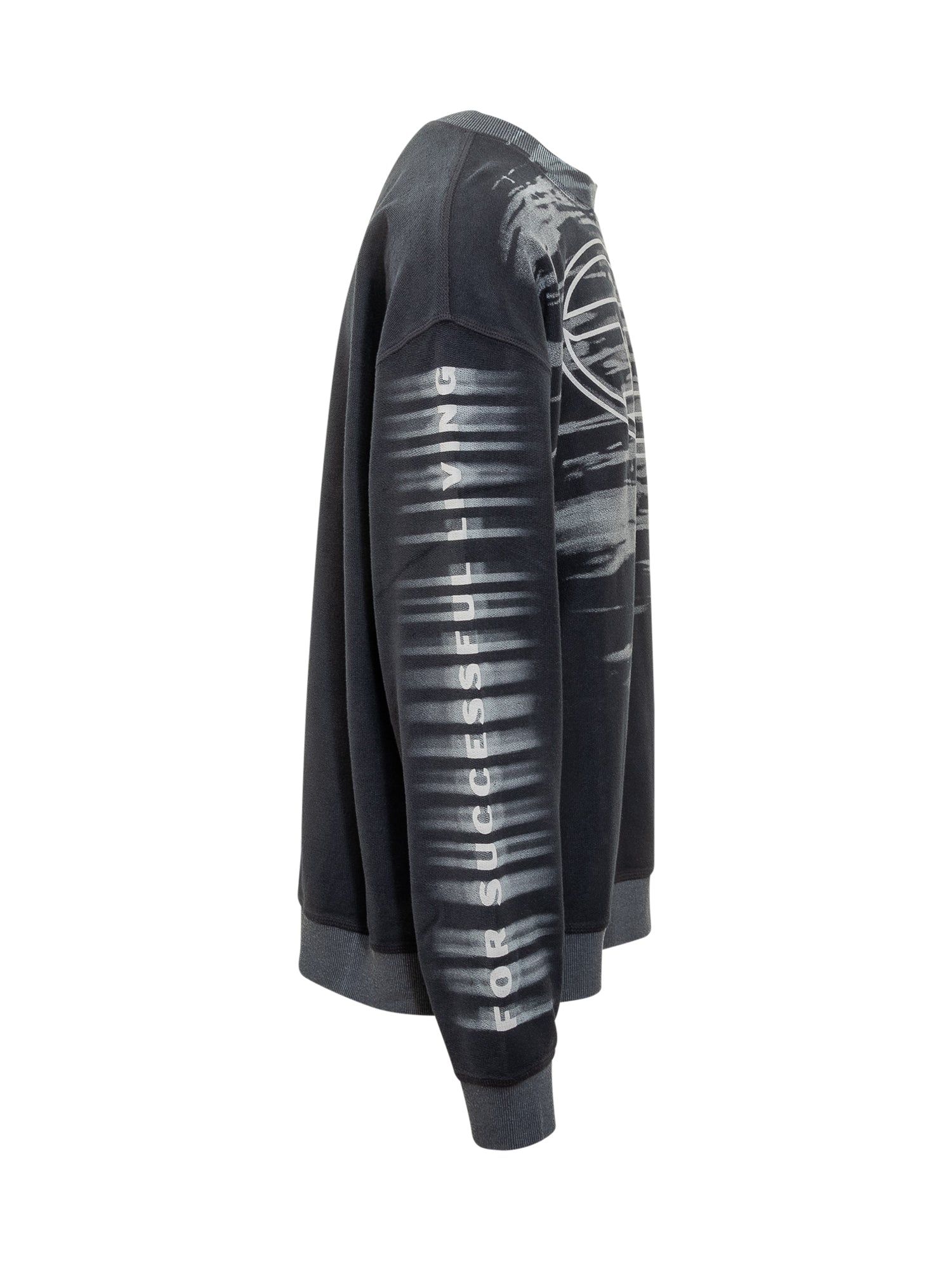 Black Diesel sweatshirt in cotton with gradient effect and large grey logo print.