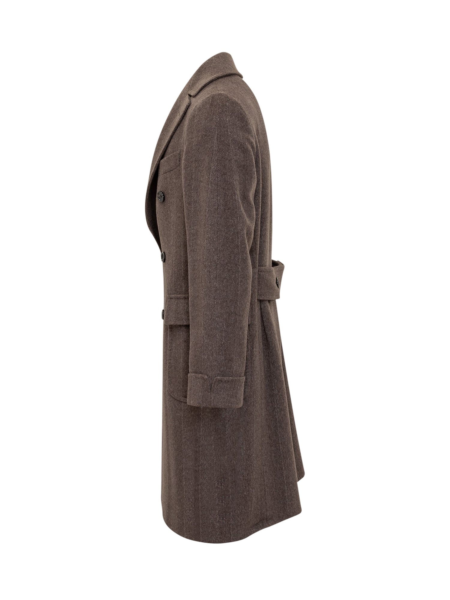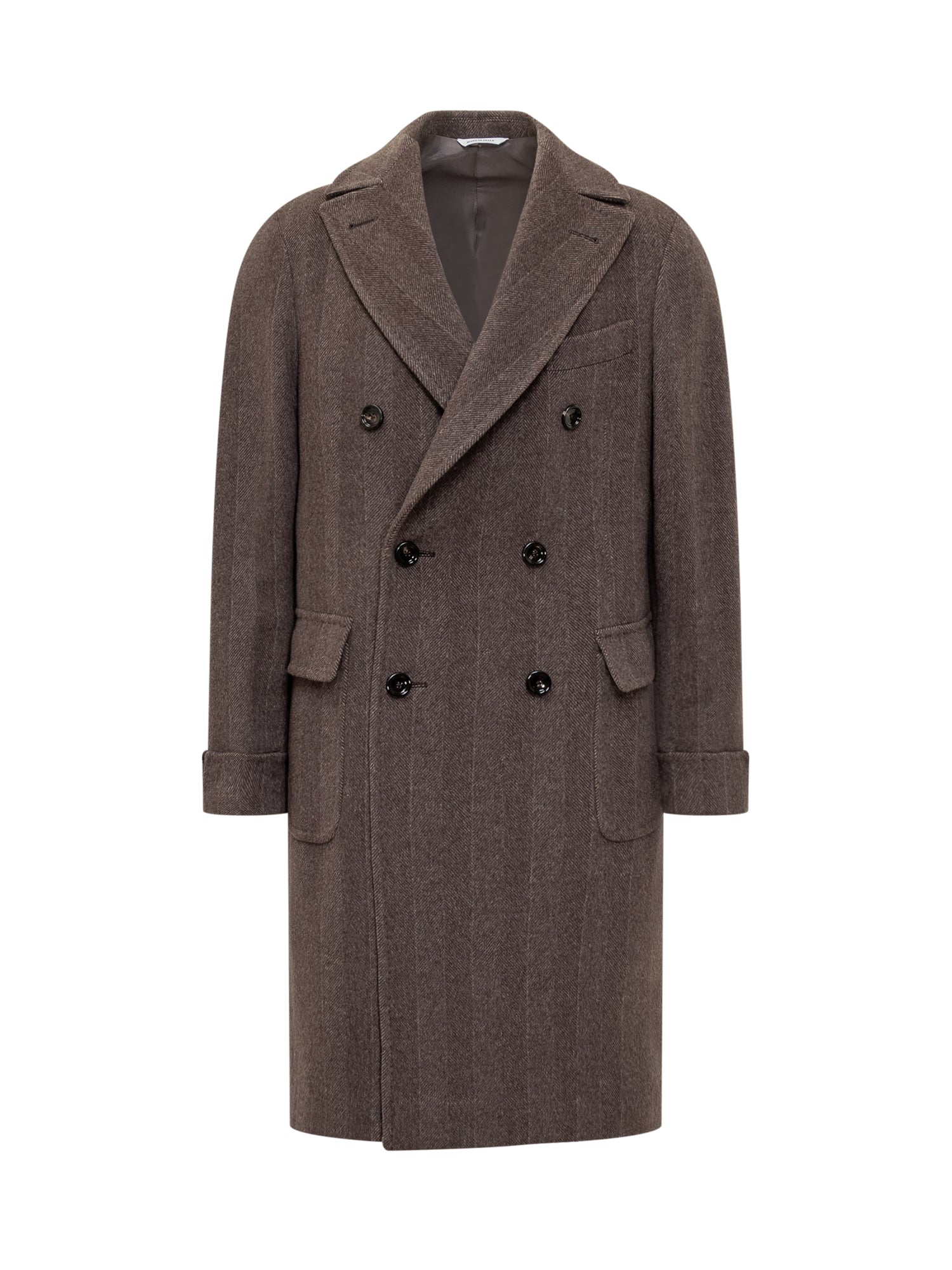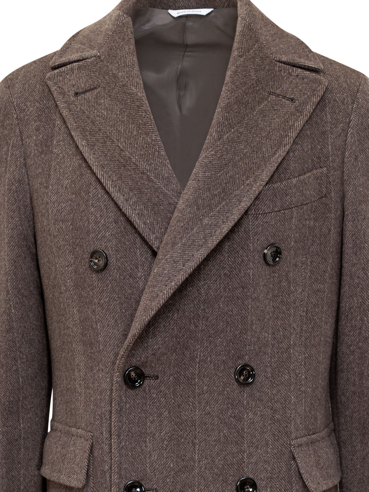 Esterno double-breasted coat in brown wool with classic lapels and front pockets.