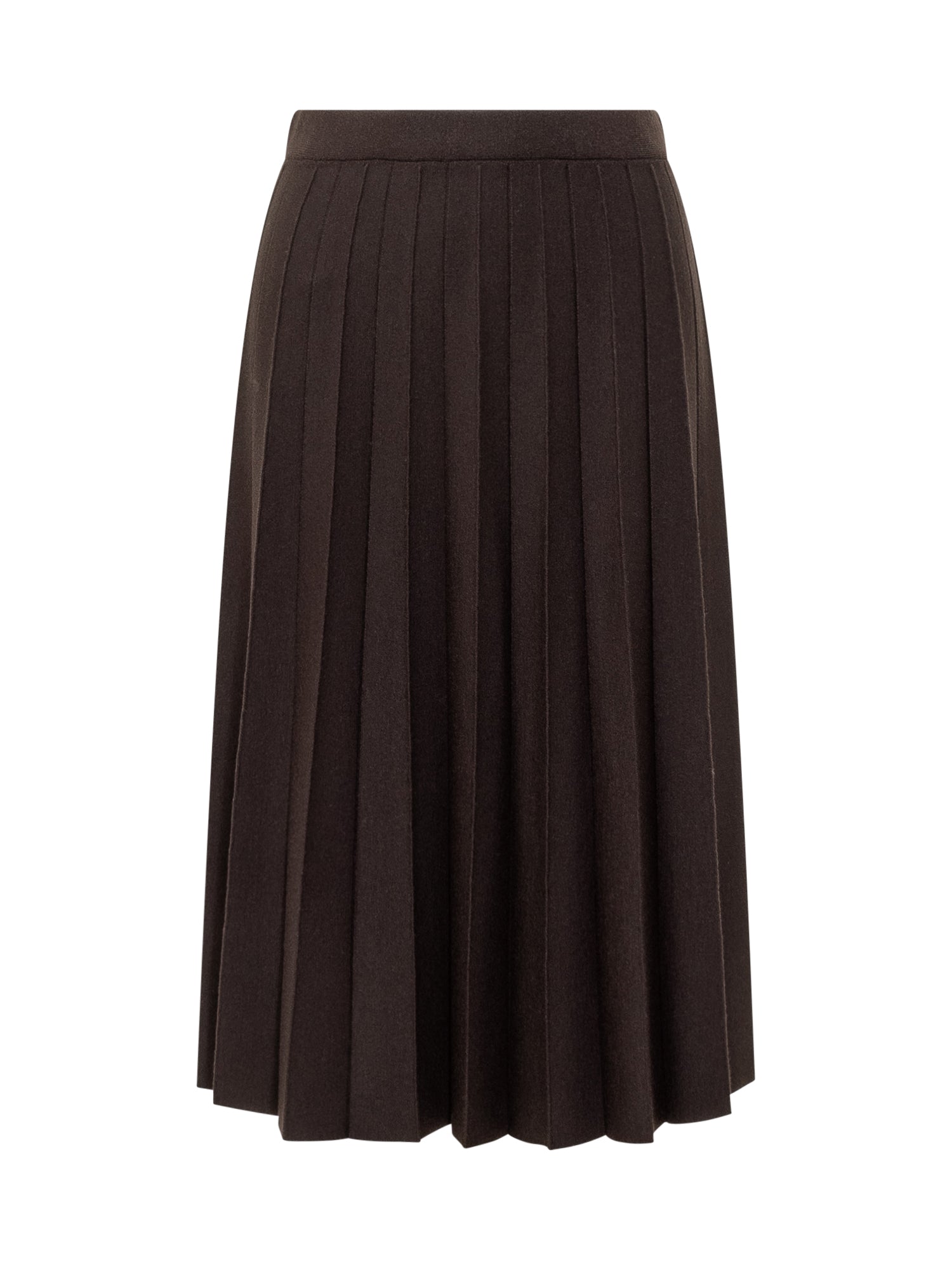 Exterior midi skirt in pure merino wool with neat pleats. Elegant and feminine silhouette.
