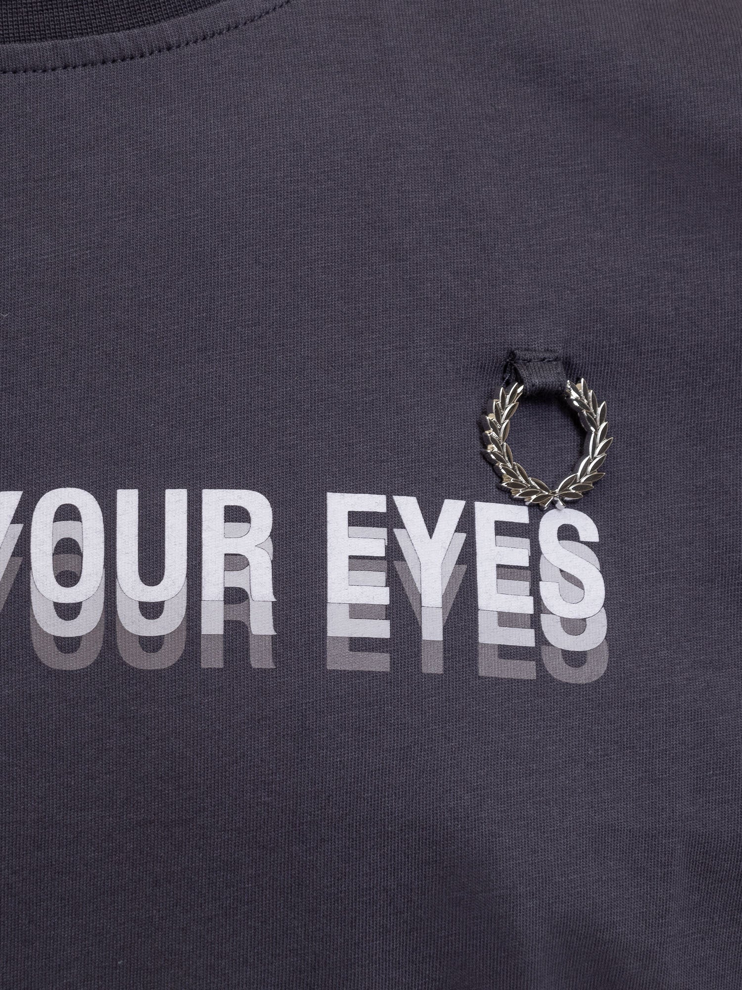 Short-sleeved t-shirt. Crewneck. Print on the front. Logo on the chest.