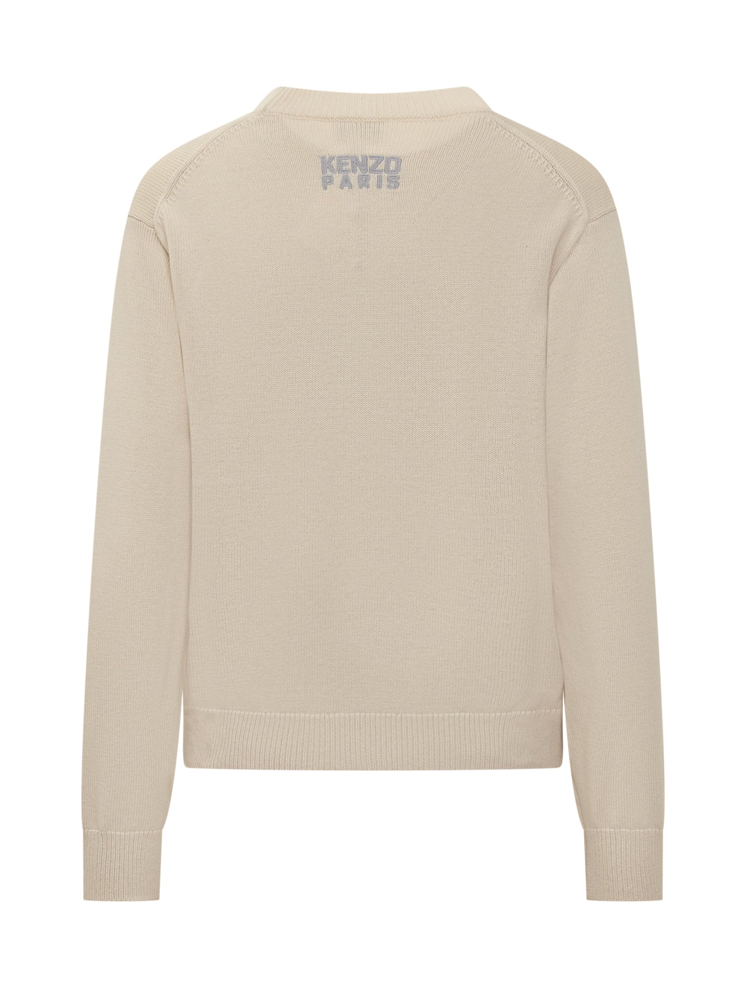 Kenzo beige cotton sweater featuring the iconic tiger embroidery and logo on the chest. Casual fit and modern design.