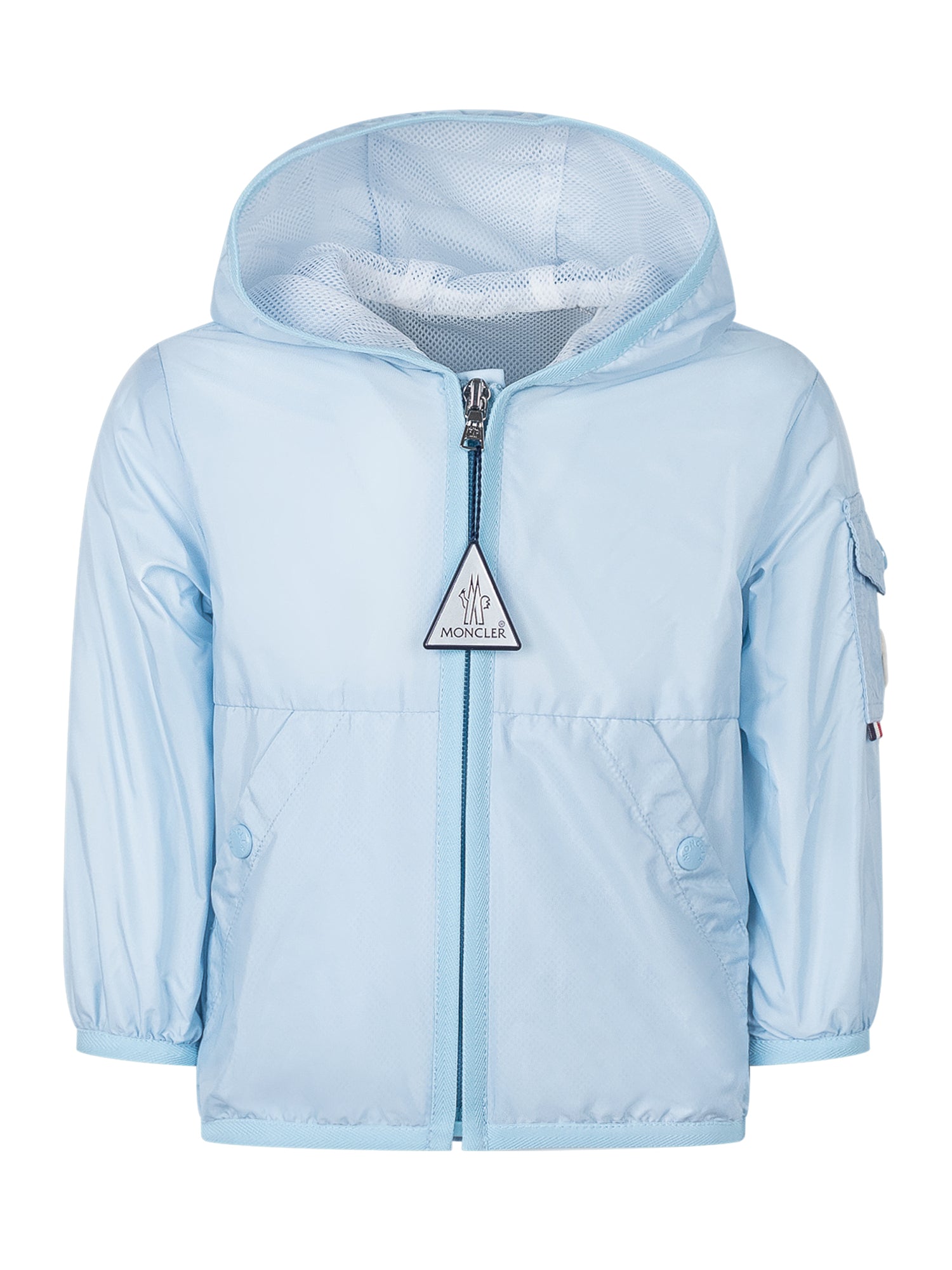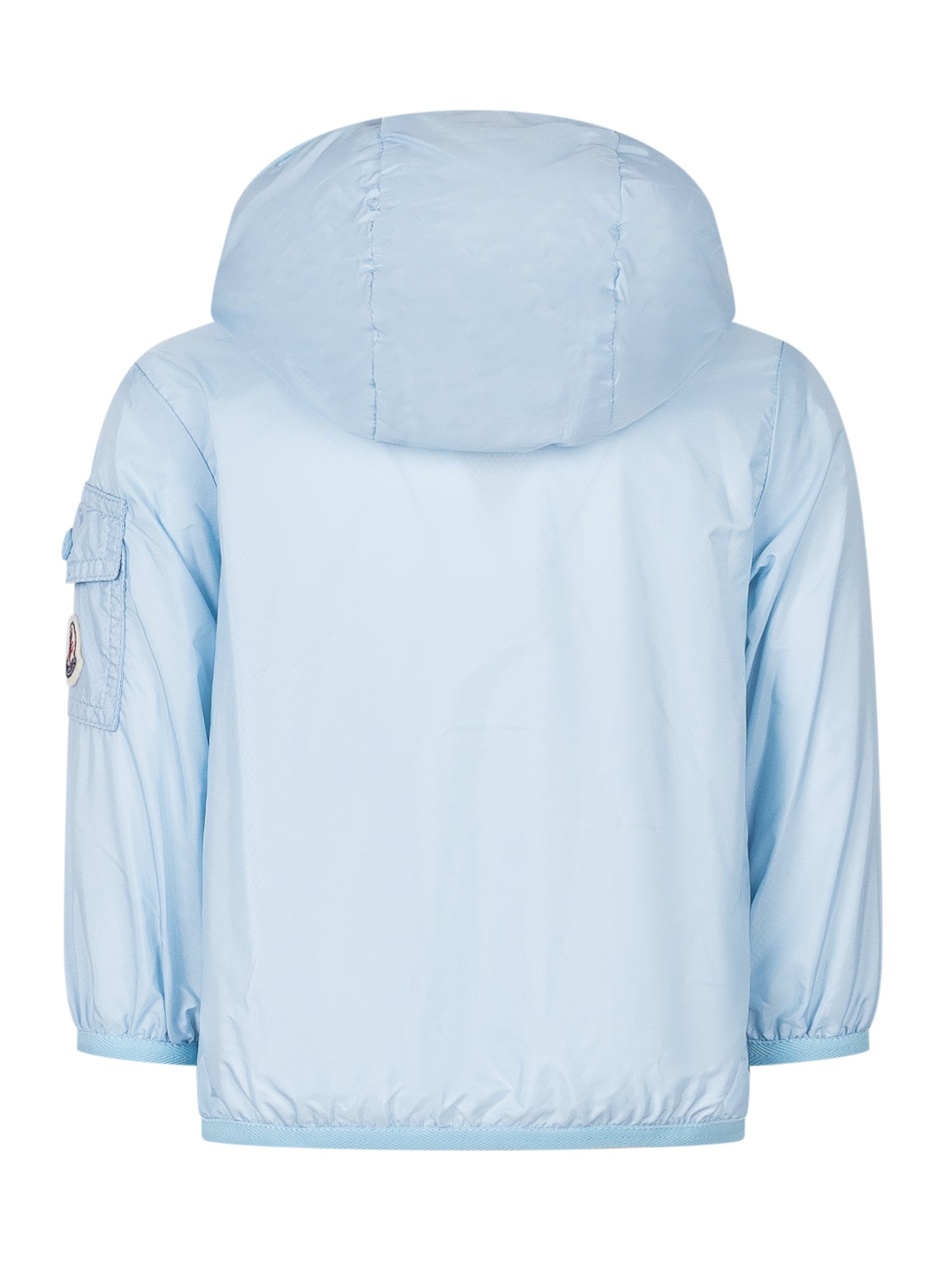 Songu jacket with hood and front zip closure. Side pockets with snap button and patch pocket on the sleeve. Essential line design.