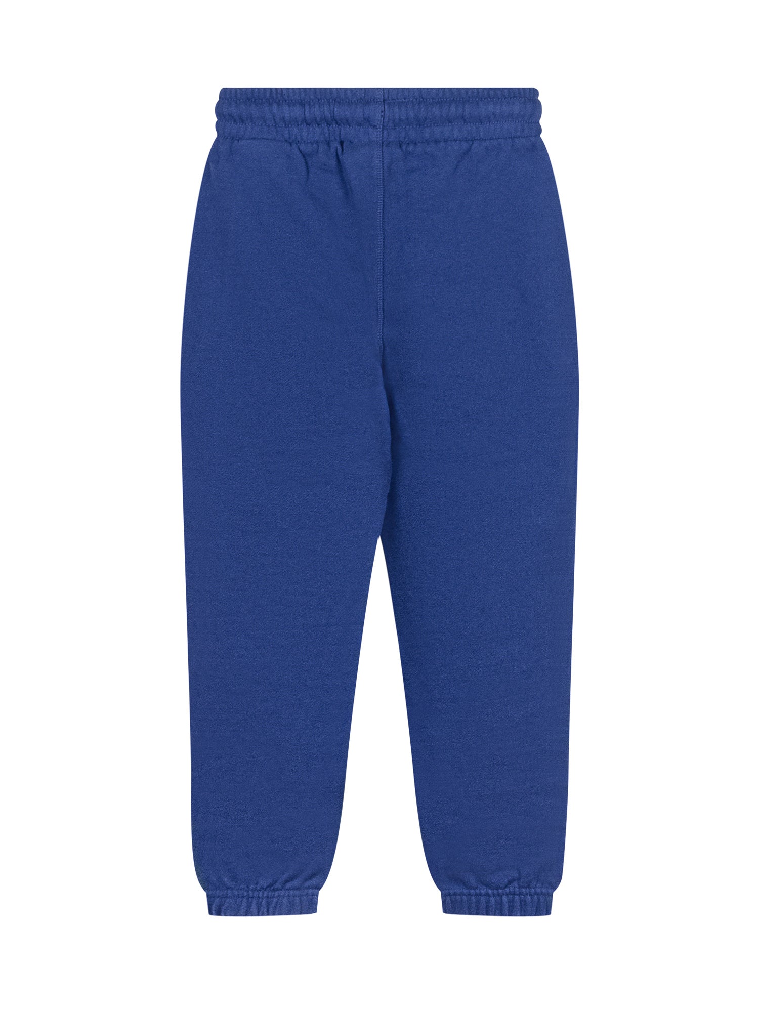 Off-White blue jogger pants featuring elastic waist and ankle cuffs. Embroidered logo on the side.