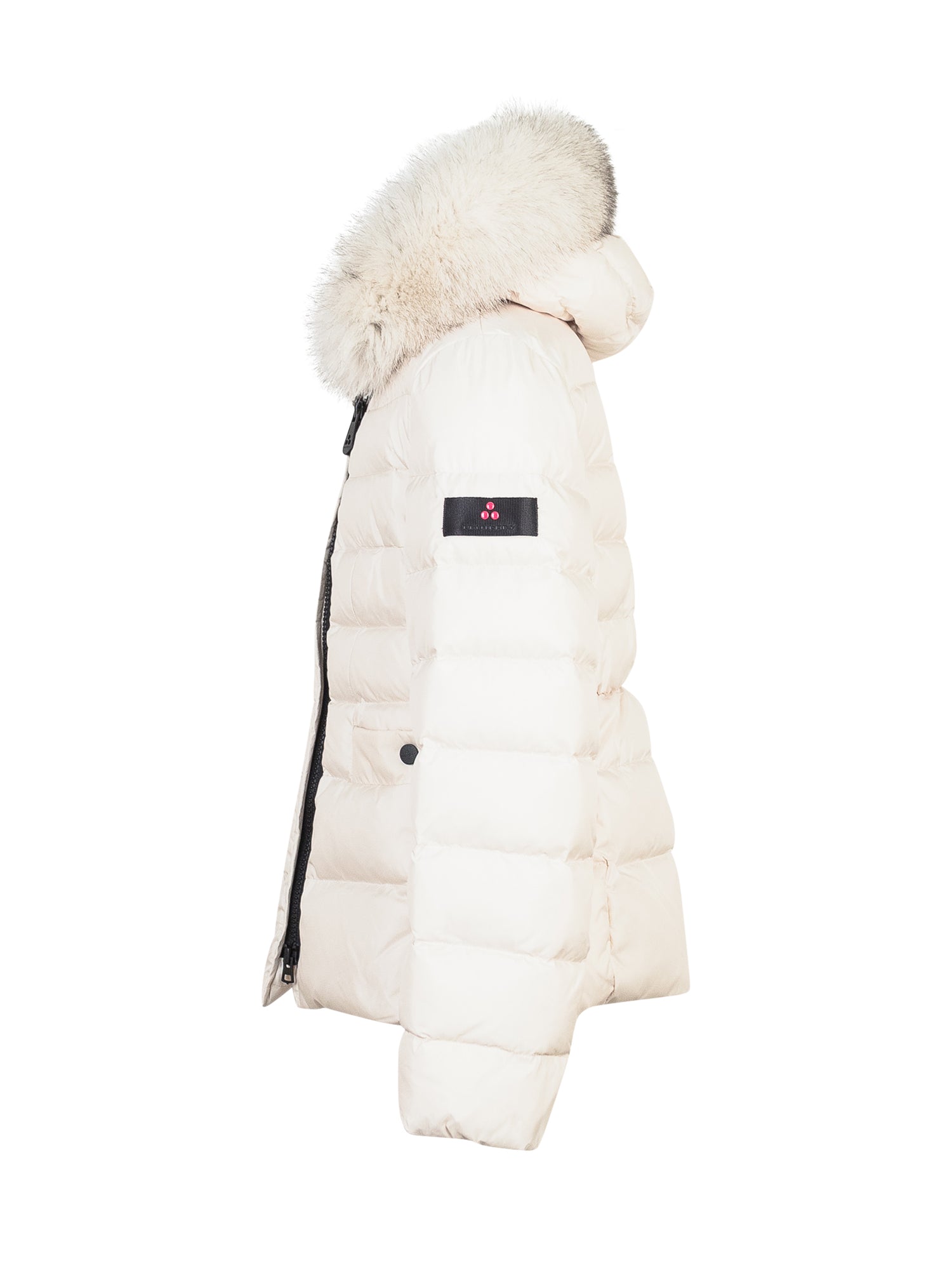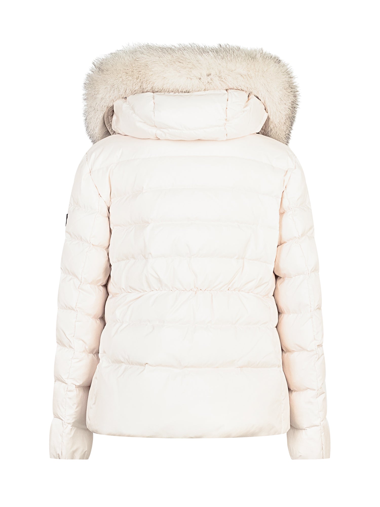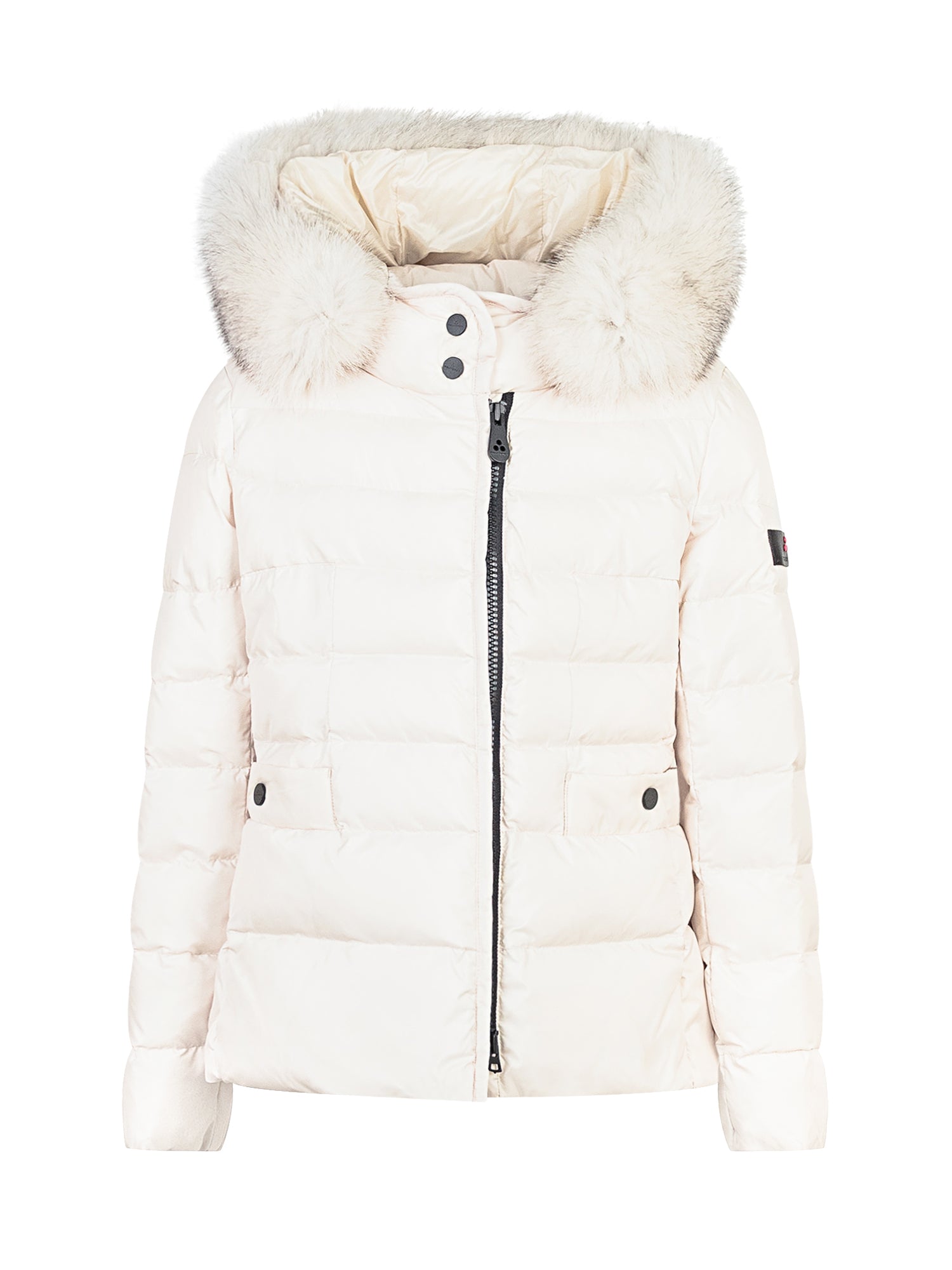 Peuterey white down jacket featuring fur-trimmed hood, zip closure and buttoned pockets.