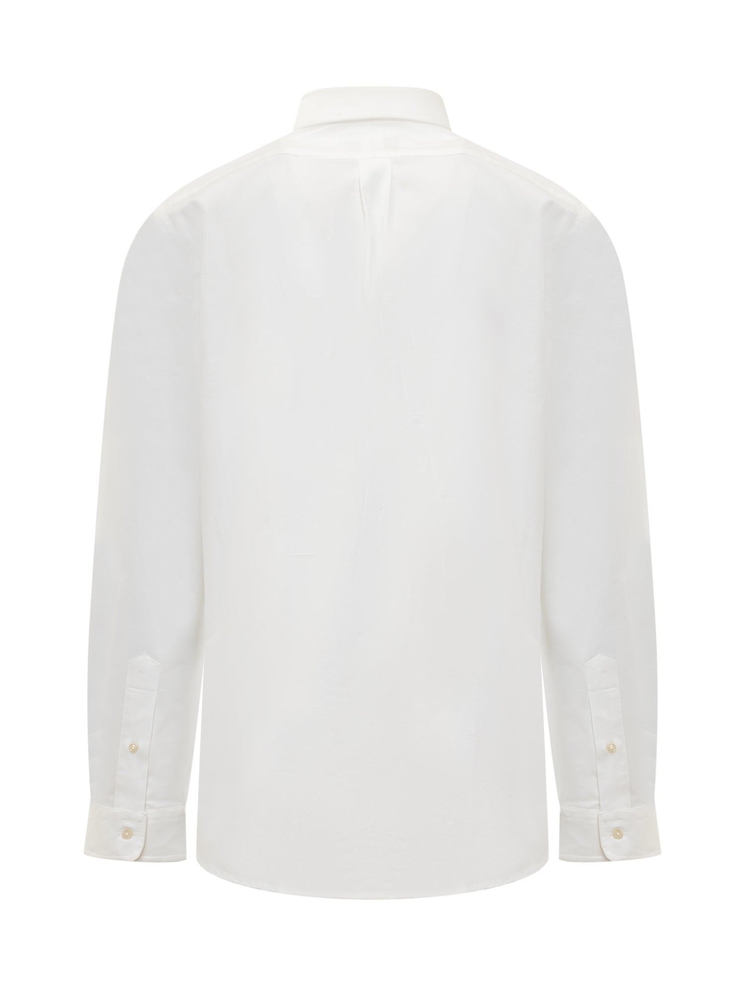 White shirt. Stretch cotton. Long sleeves. Button fastening. Button-down collar. Buttons at cuffs.