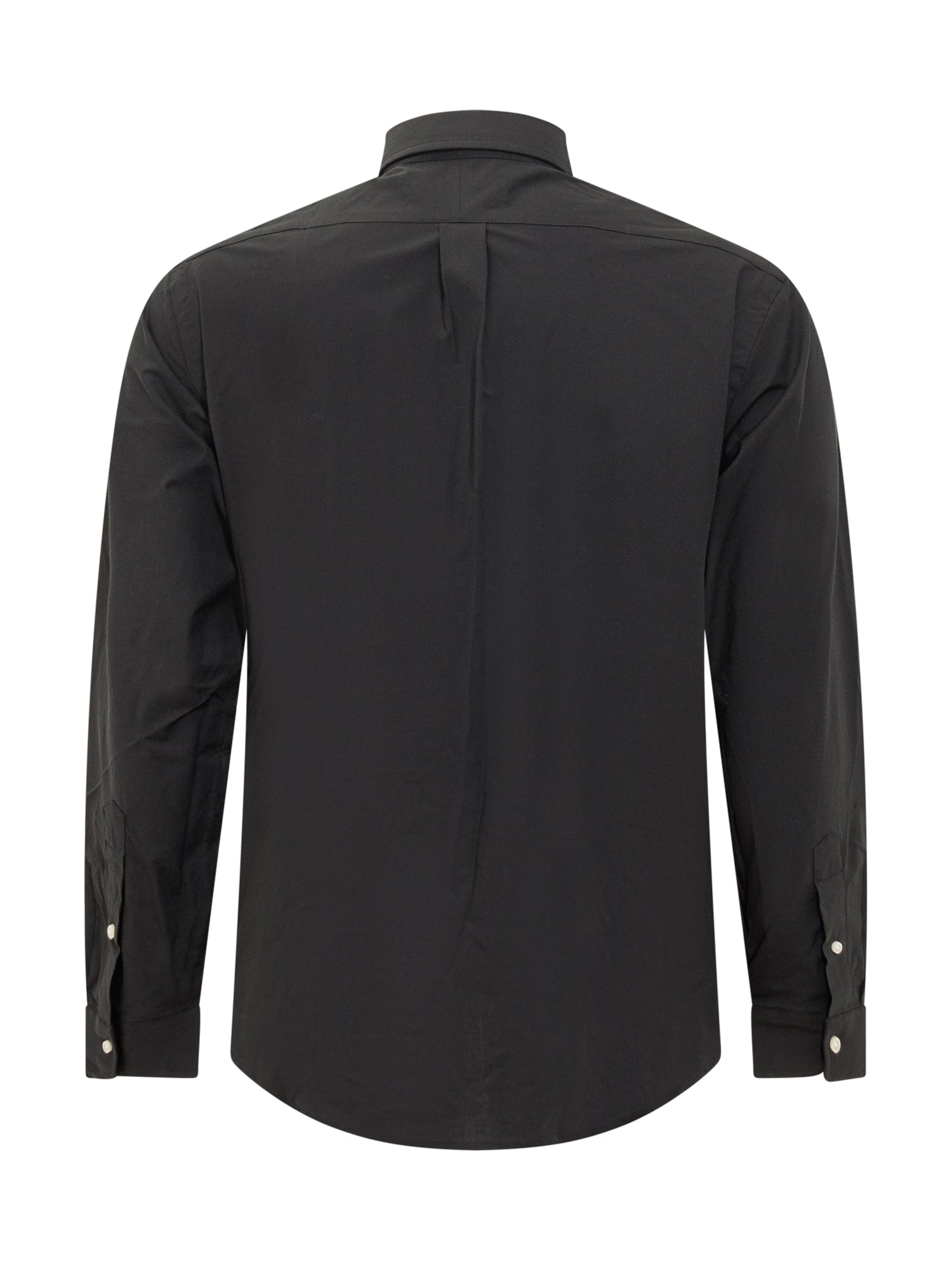Long-sleeves black shirt. Closure with buttons on the front. Classic collar. Embroidered logo on the chest.