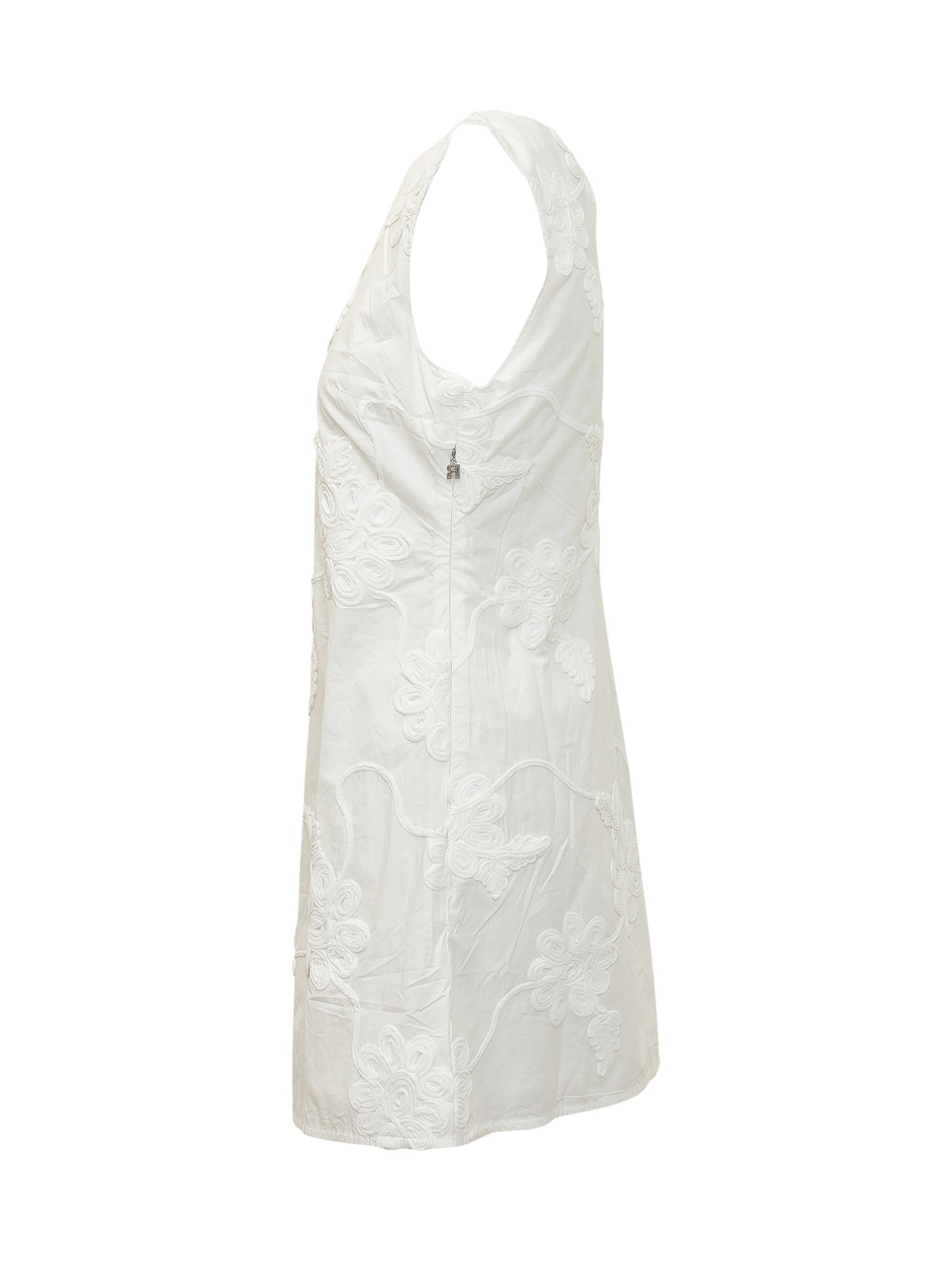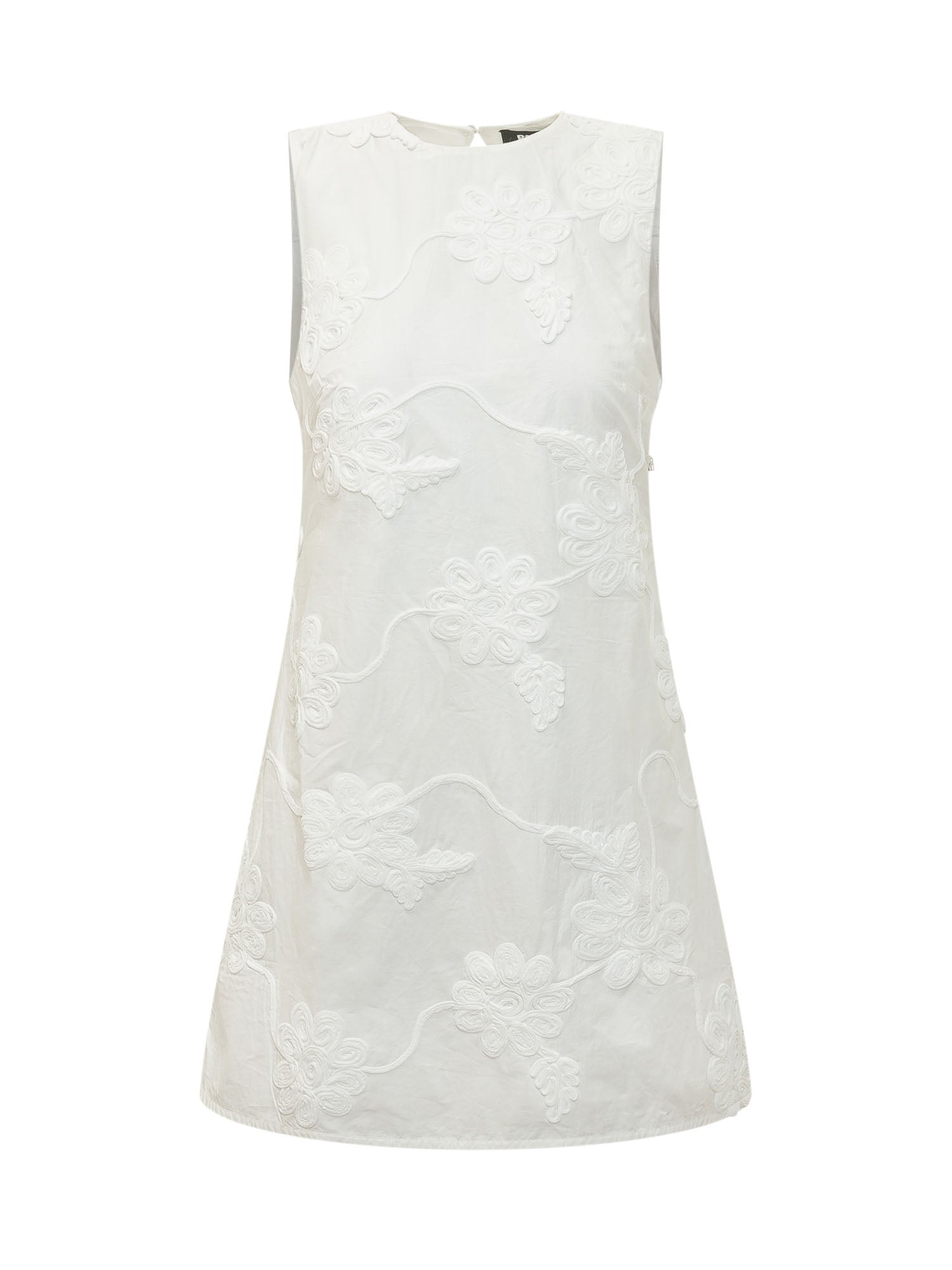Sleeveless dress with round neck and floral embroidery