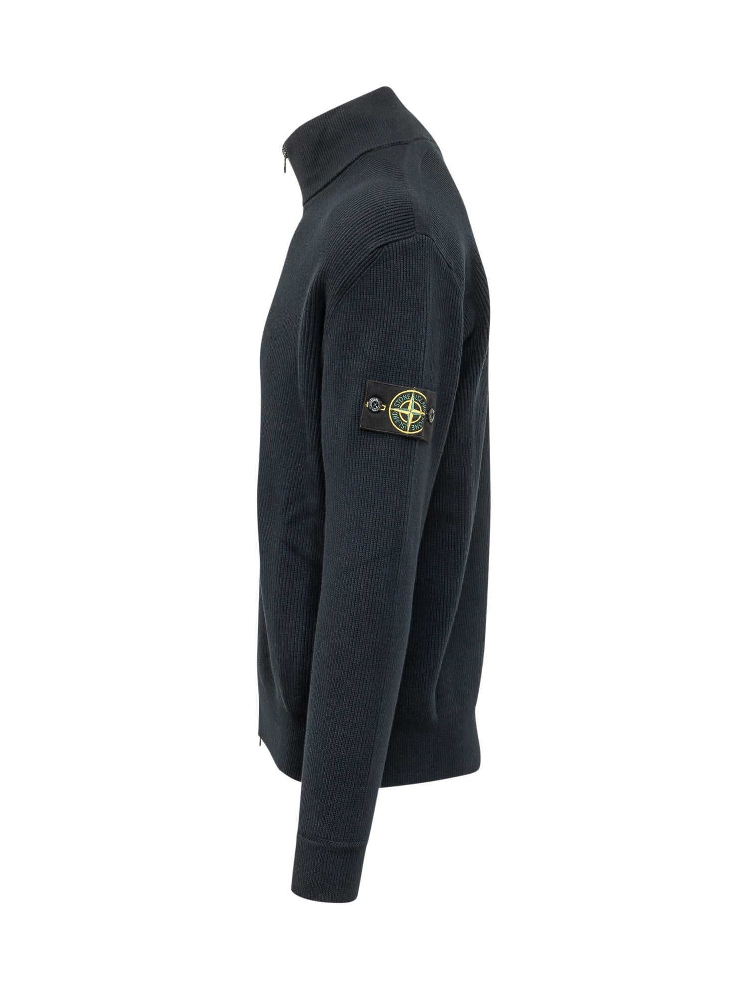 Ribbed knit cardigan featuring a full zip closure and high neck design. Finished with clean edges for a comfortable and refined fit. Perfect as a lightweight layer for modern casual looks.