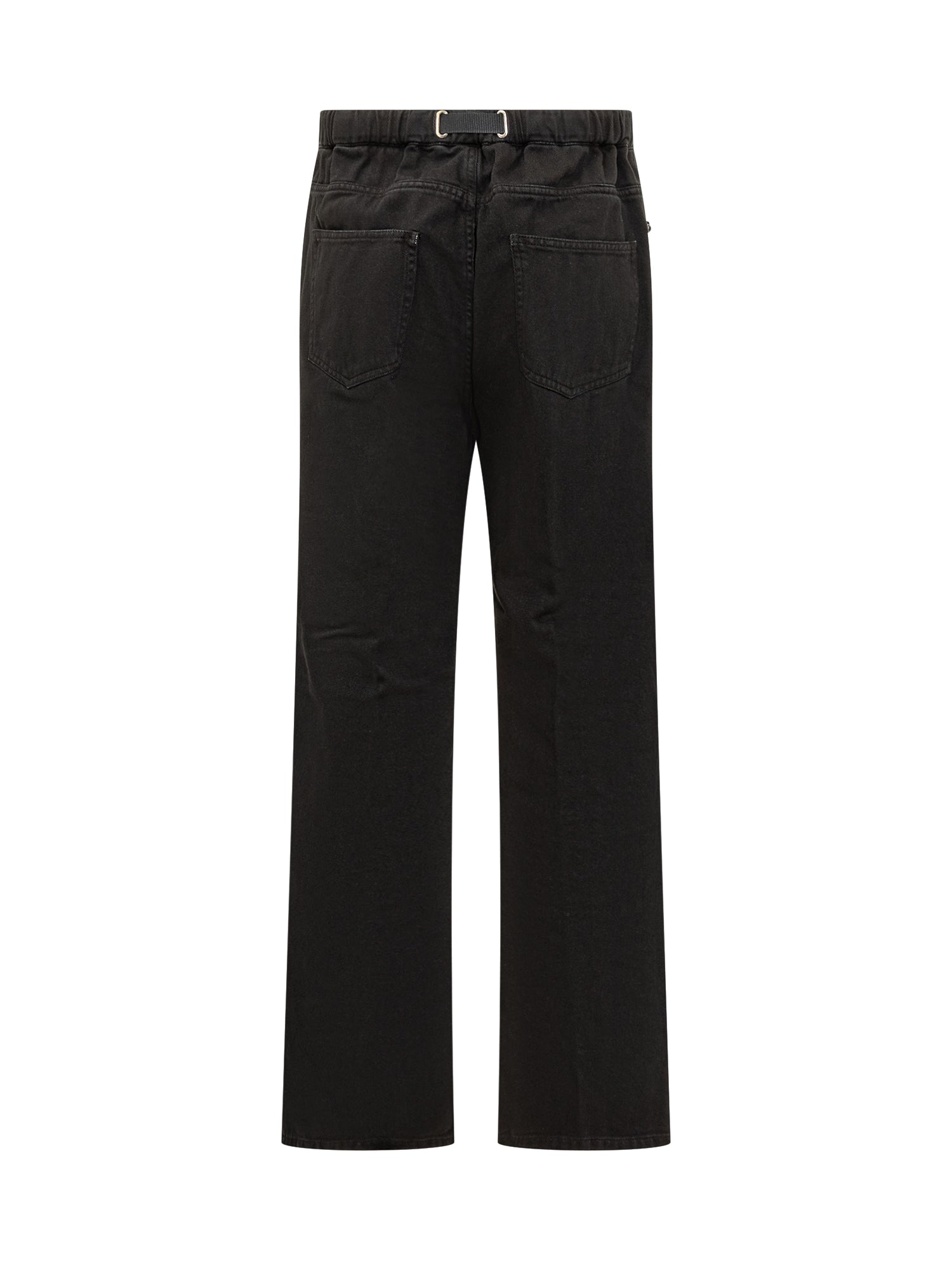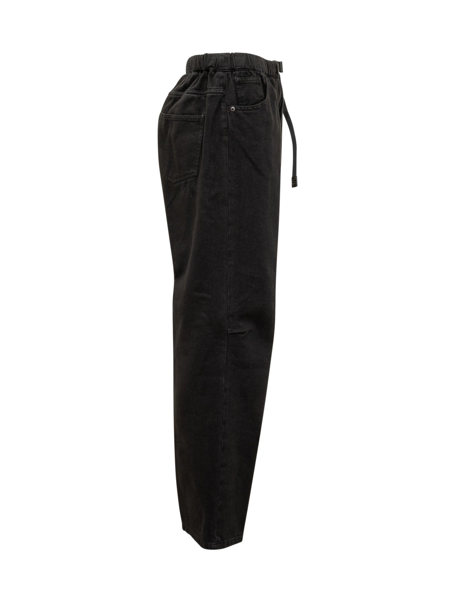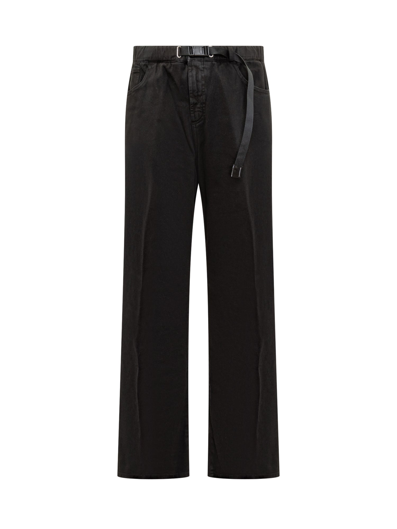 Whitesand black trousers with adjustable belt and elastic waist. Made from soft, lightweight fabric.