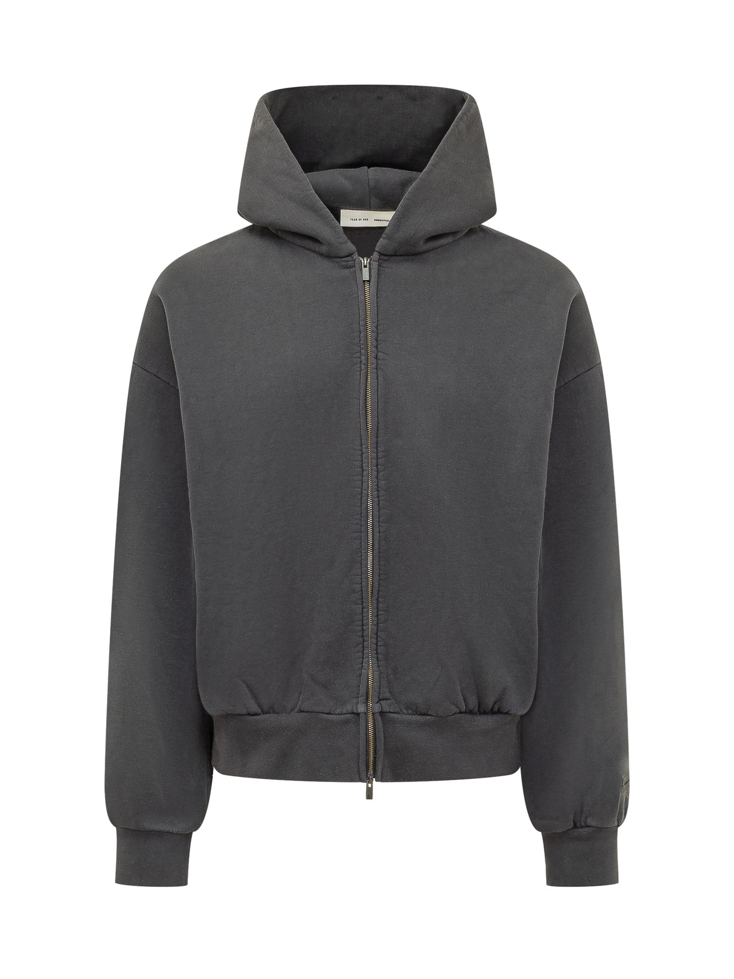 Hooded sweatshirt in soft cotton with a relaxed fit. Full front zip closure, elasticated cuffs and hem. Side pockets and comfortable finish, perfect for modern casual and streetwear looks.