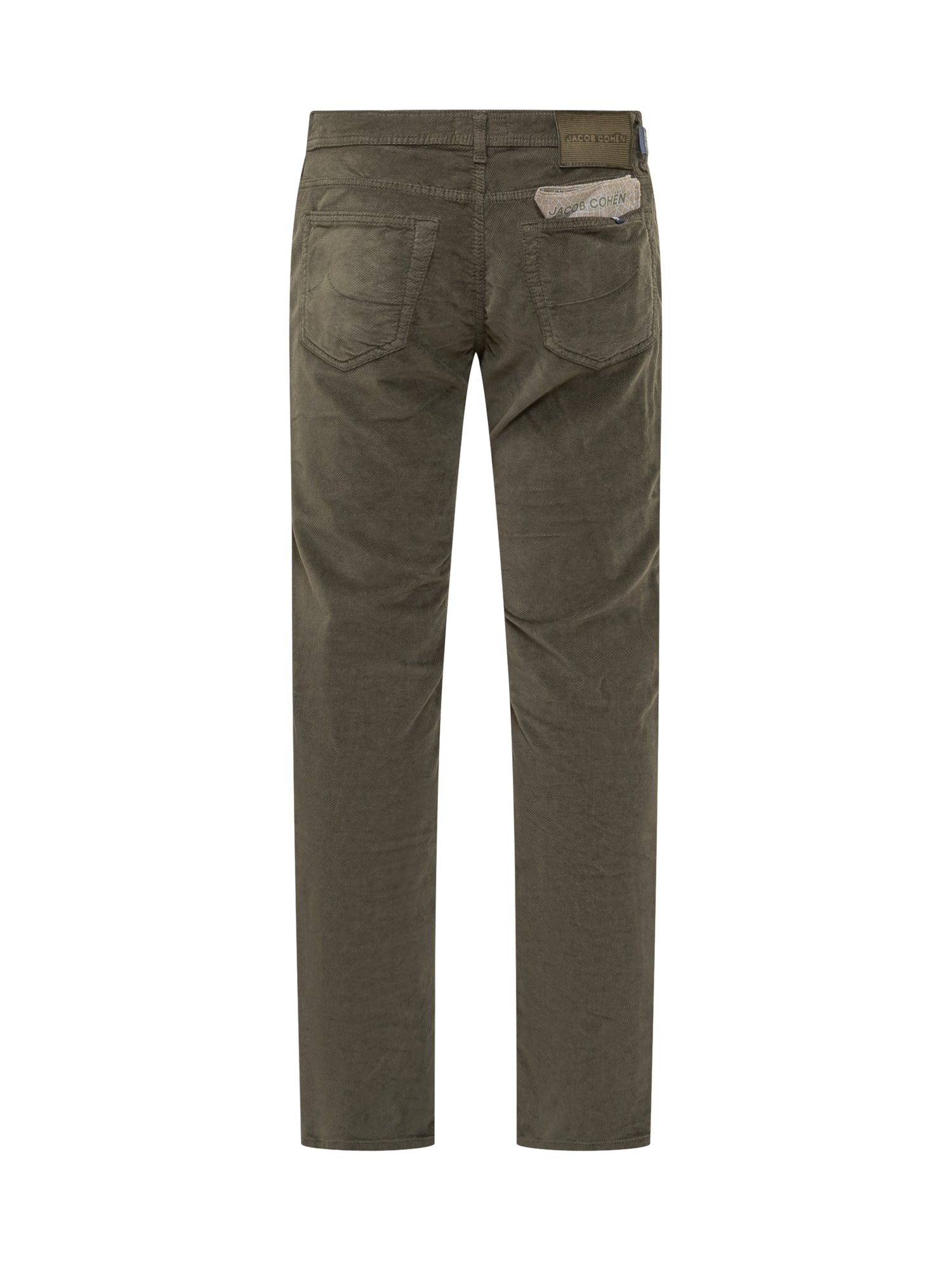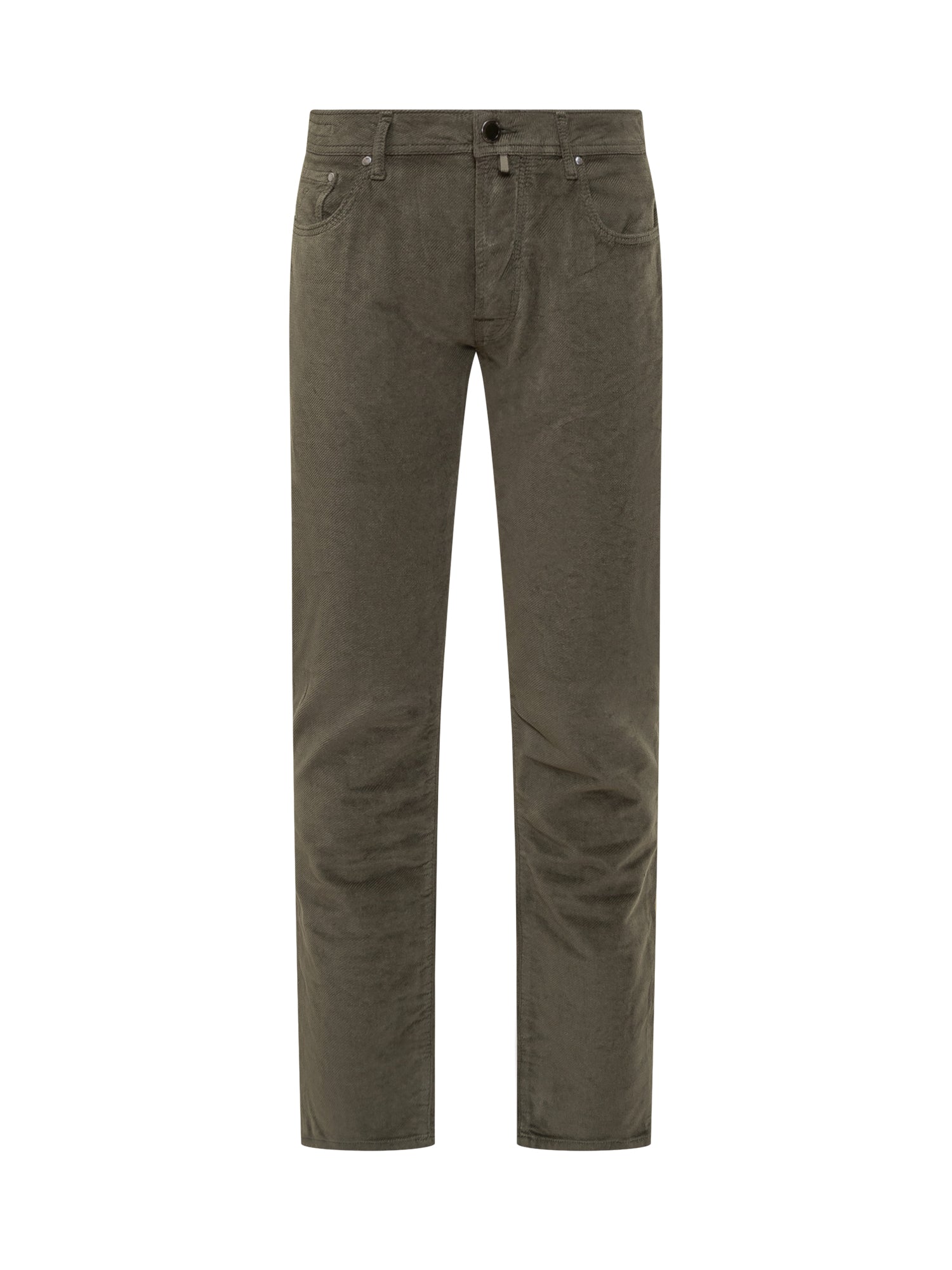 Jacob Cohen pants in green velvet with five pockets and button-zip closure. Straight and refined cut.