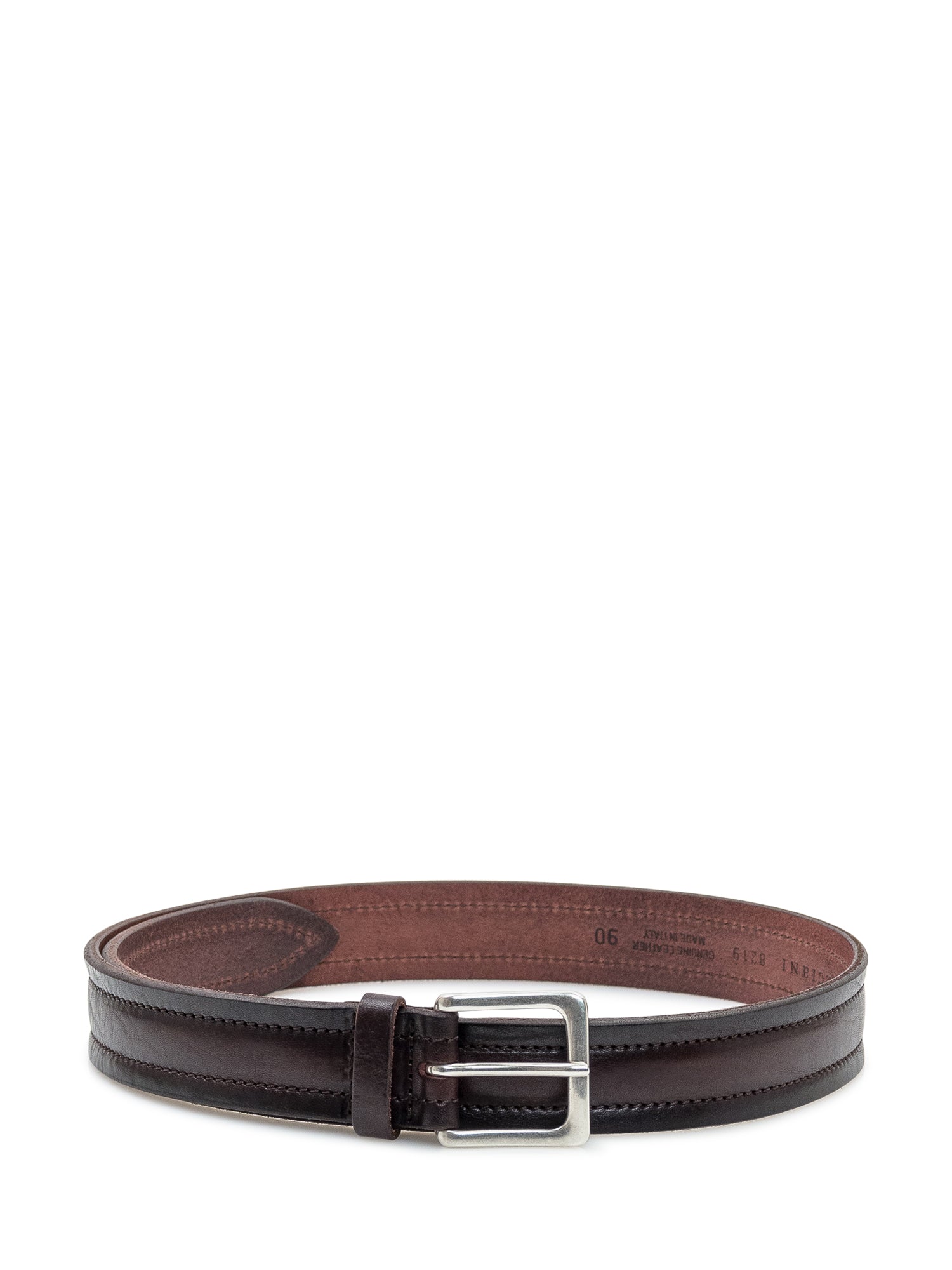 Orciani belt in brown leather with visible stitching and silver-tone buckle.