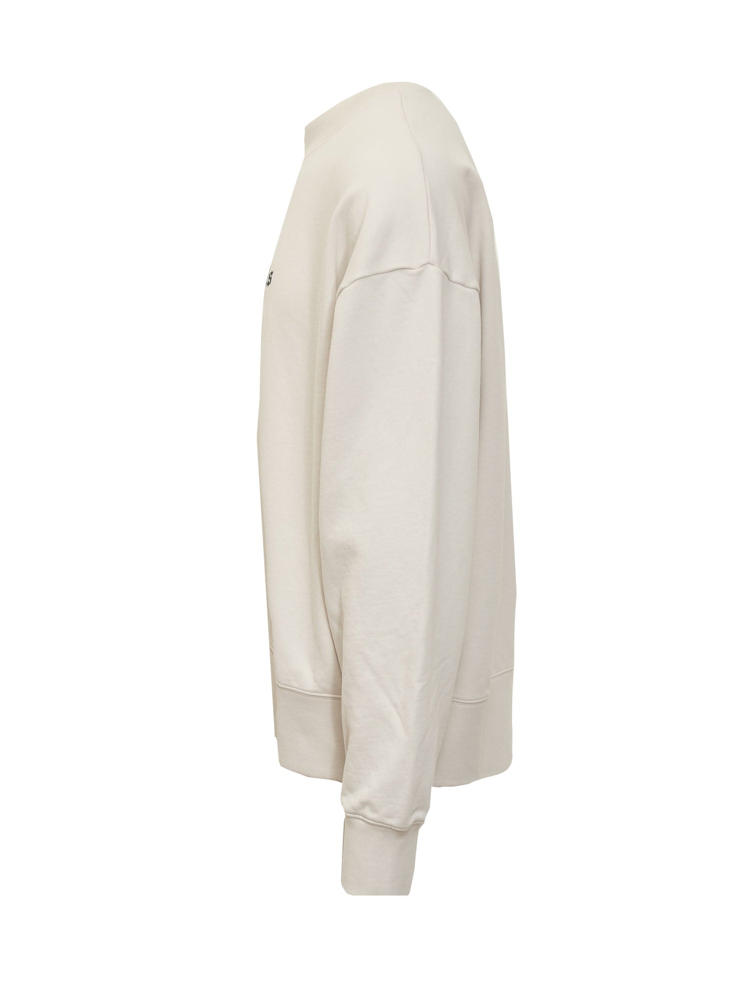 Beige sweatshirt. Long sleeves. Crew neck. Ribbed collar, hem and cuffs. Logo print on the front.