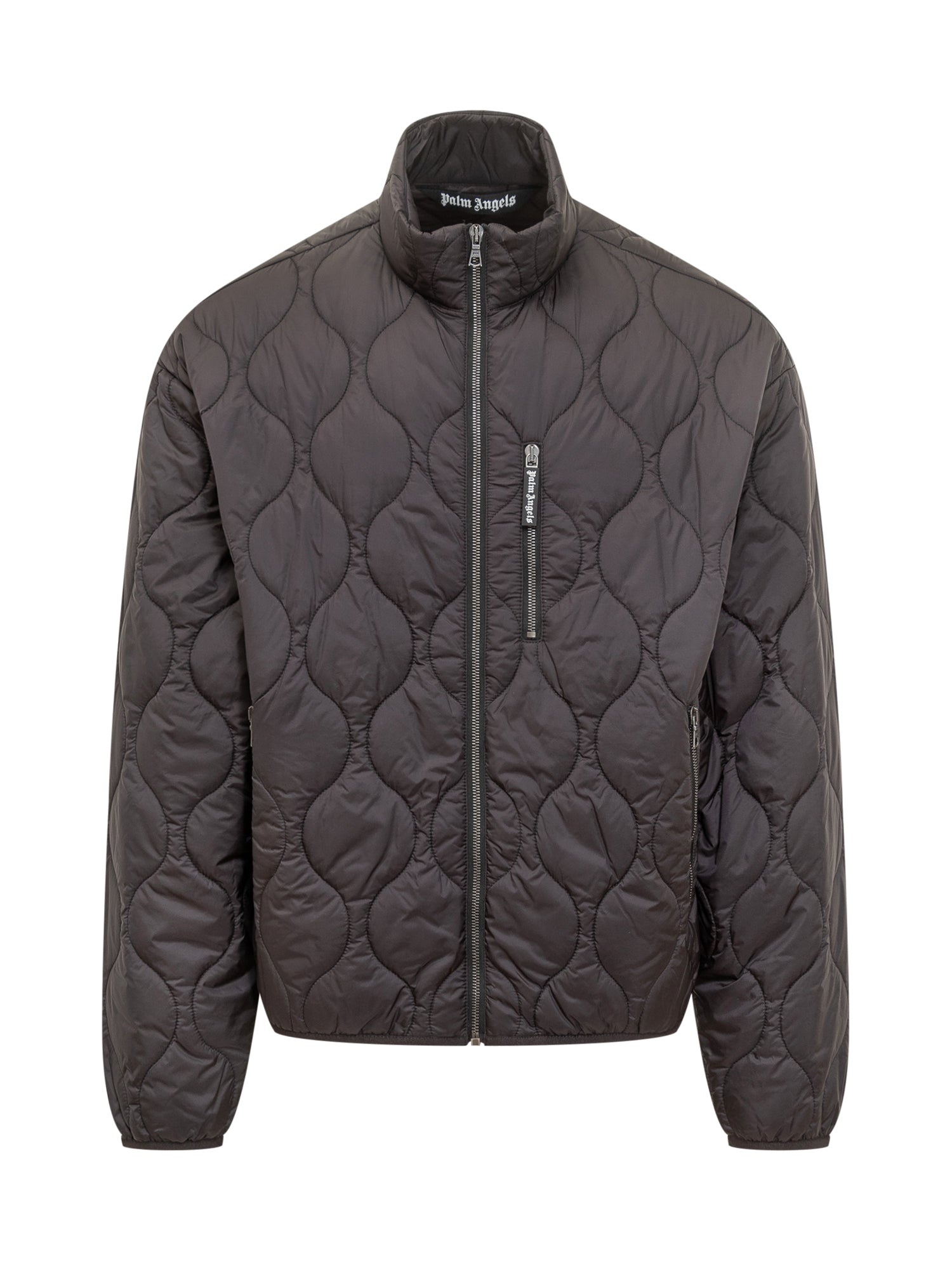 Palm Angels quilted jacket with front zip and embroidered logo.