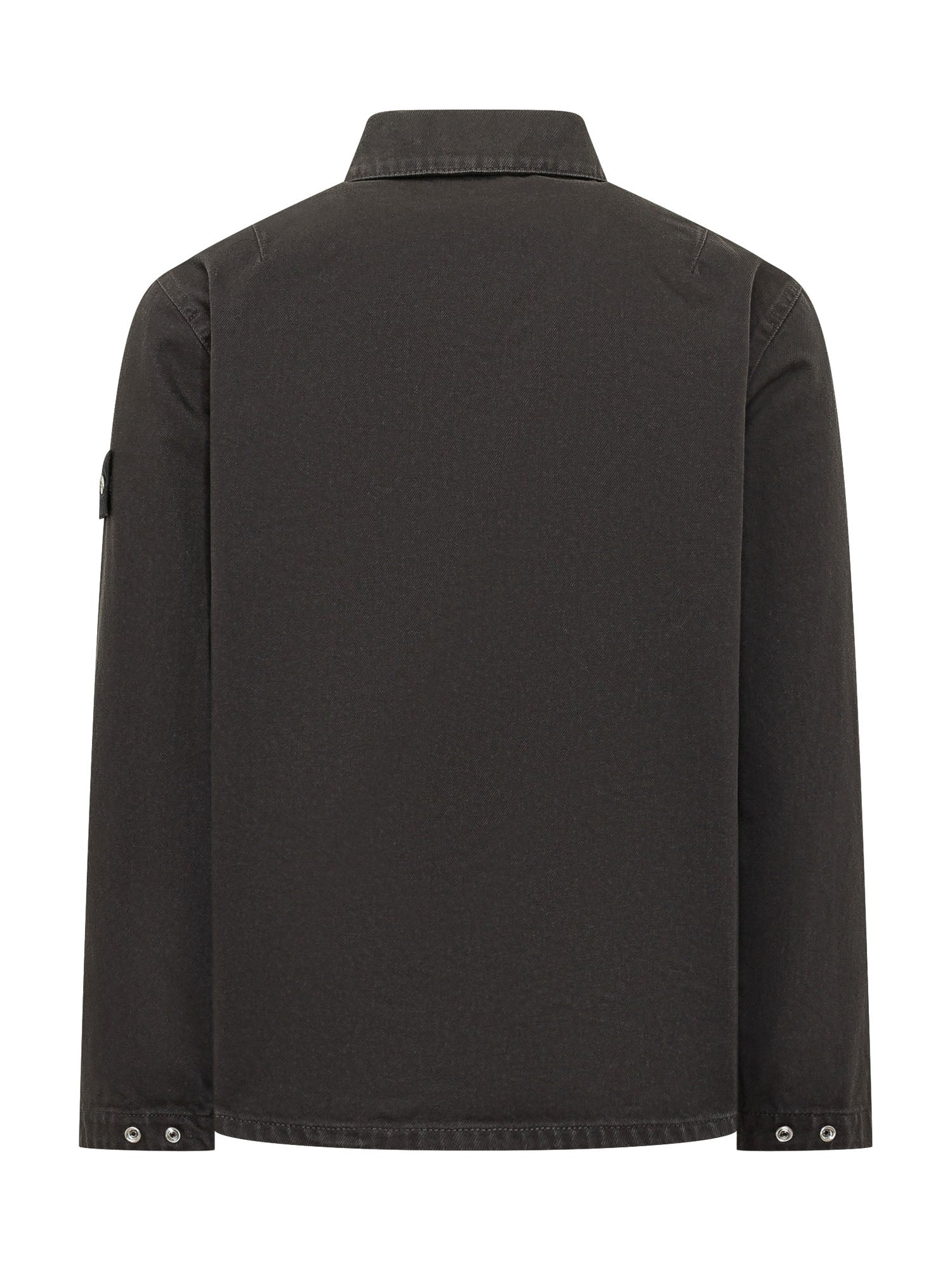 Long sleeve shirt with classic collar and front zip closure. Features chest pocket with flap and buttons and logo patch on the sleeve. Clean structure suitable for contemporary looks.