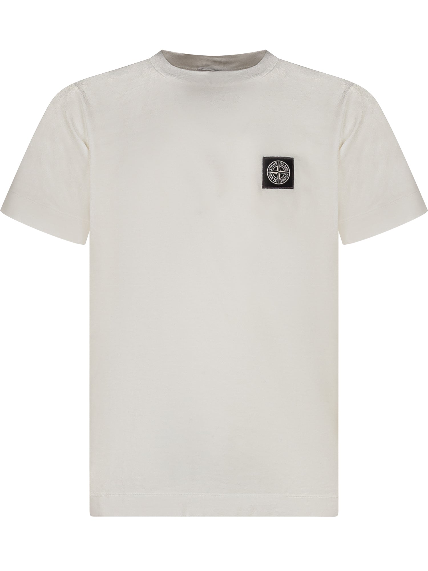Stone Island white short-sleeve cotton t-shirt with crew neck and signature chest logo patch.
