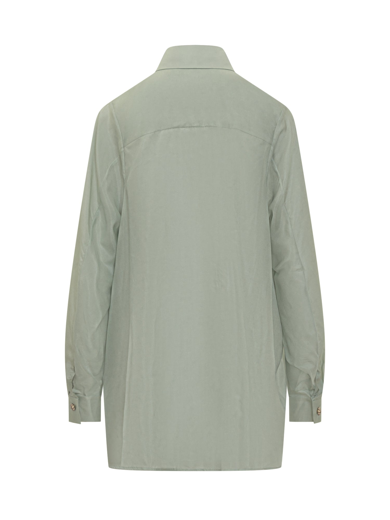 Zimmermann Coco Relaxed Shirt in sage green cotton with floral print and jewel buttons.