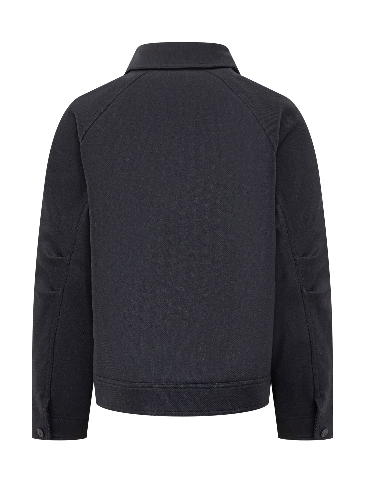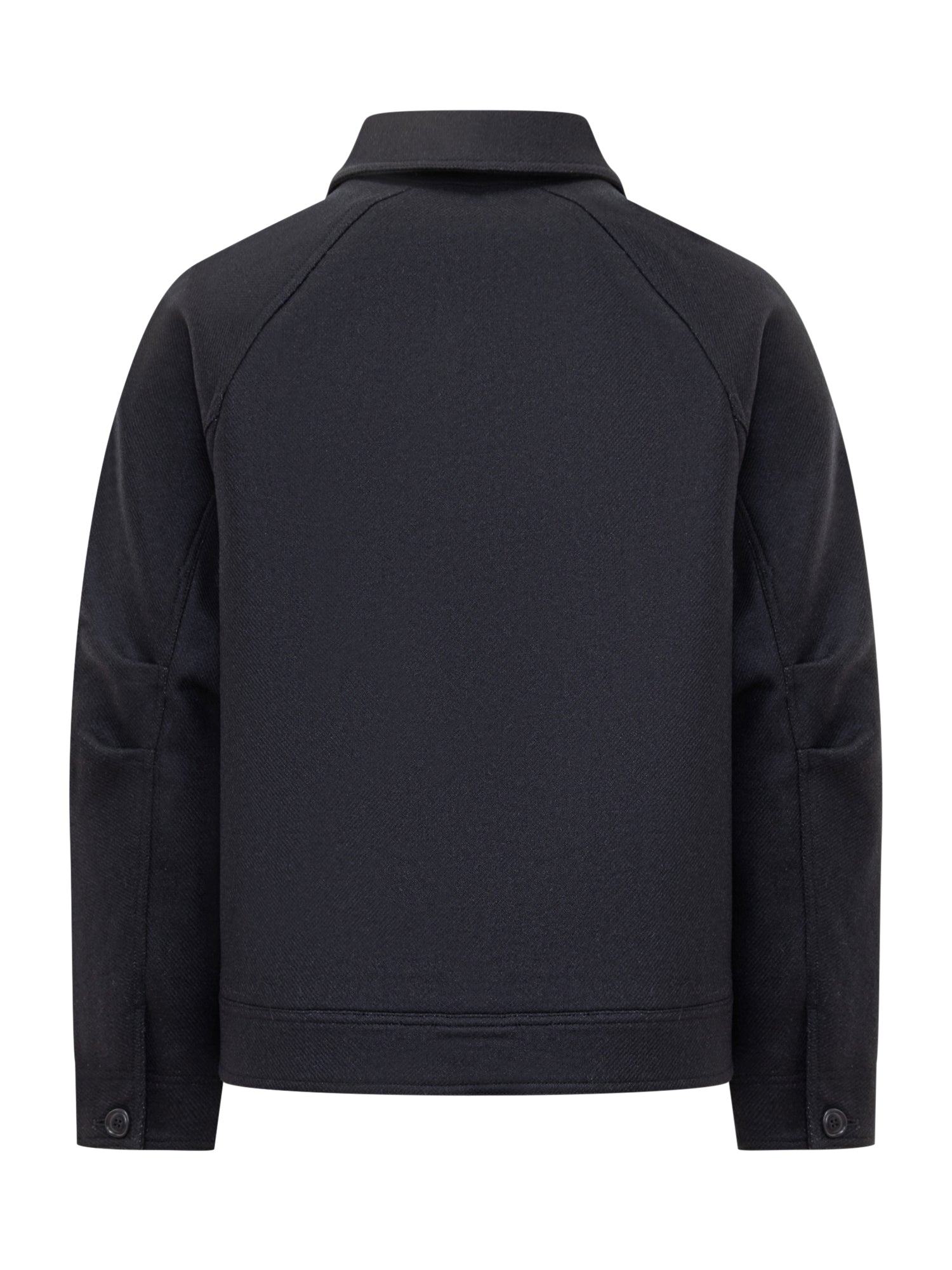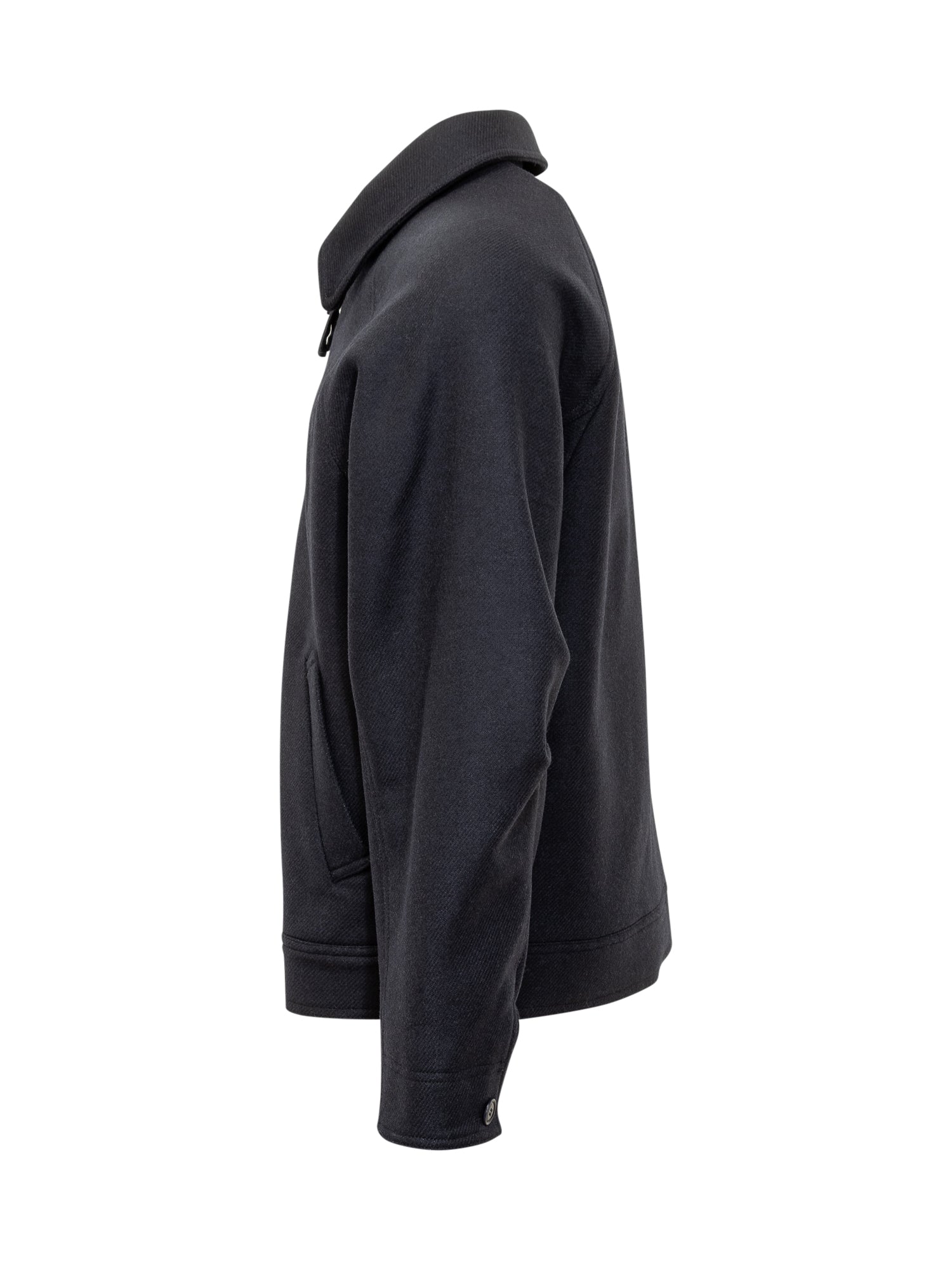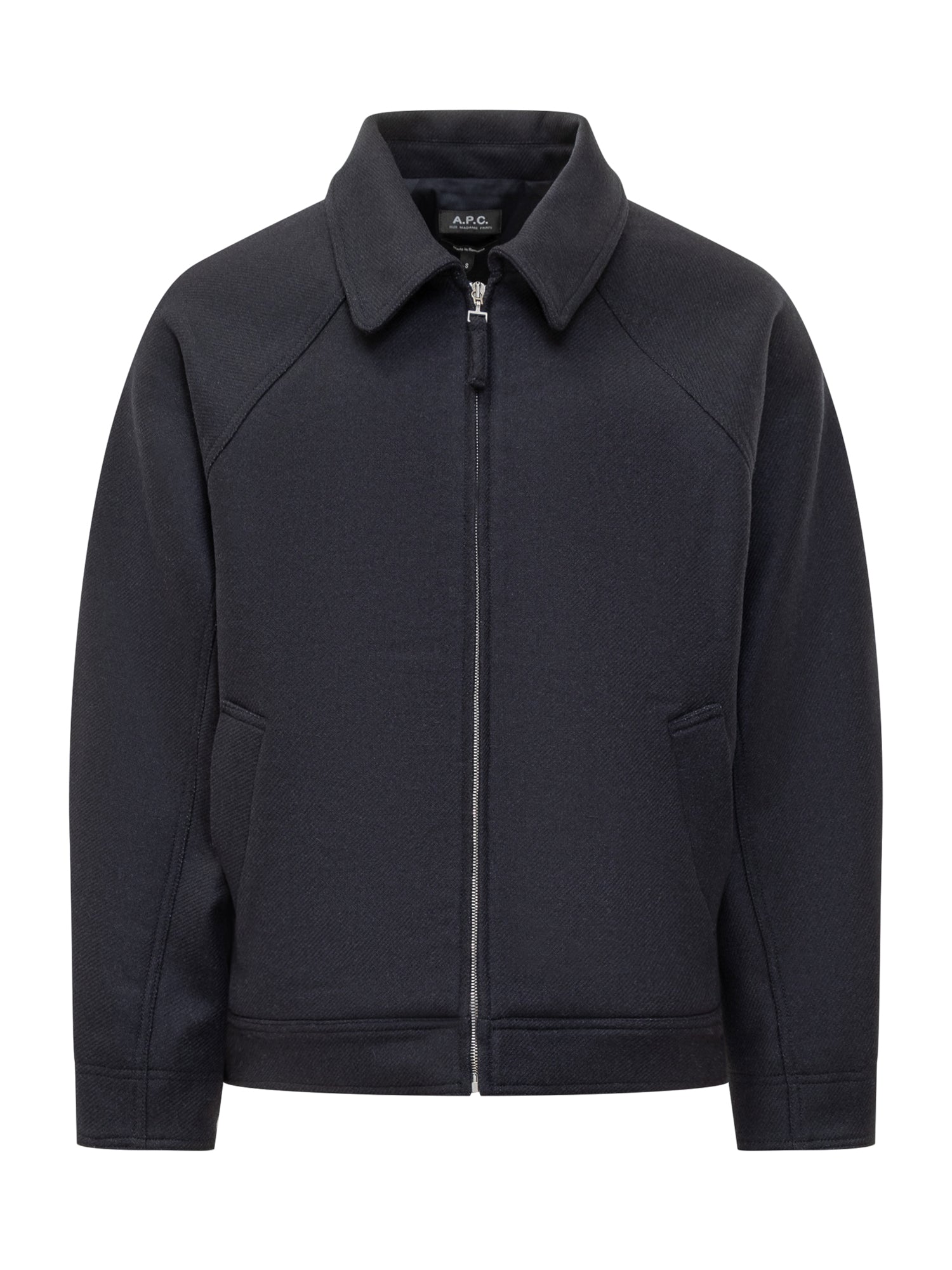 A.P.C. black wool jacket with front zip, classic collar and side pockets. A minimal and versatile piece.