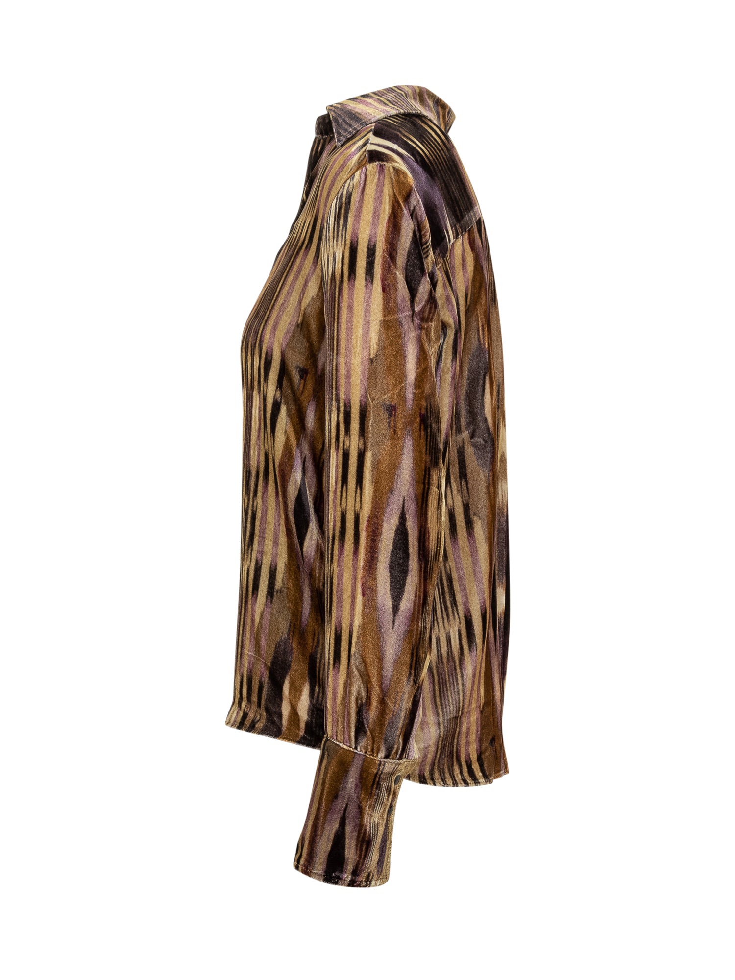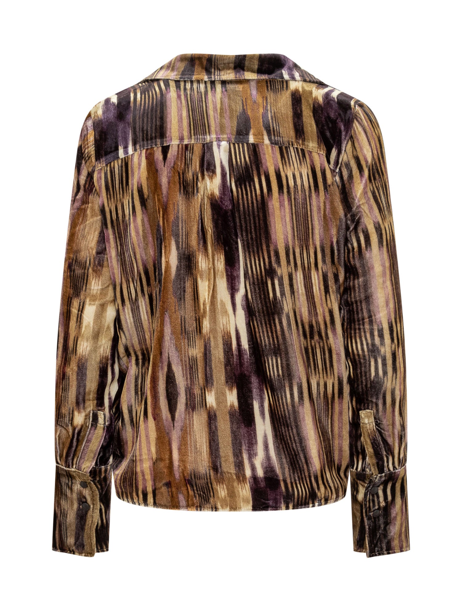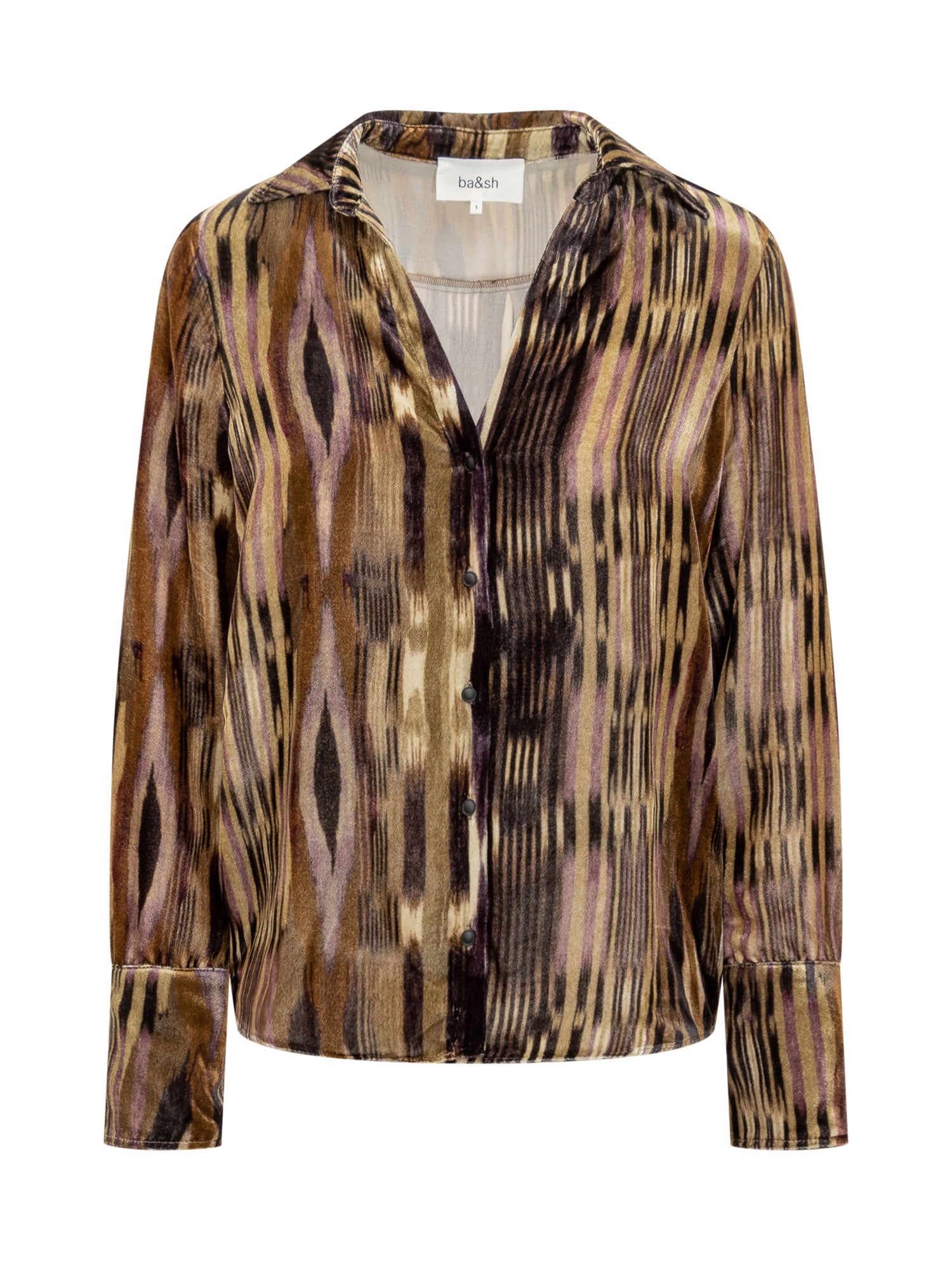 Ba&Sh velvet shirt featuring a geometric print in warm brown and purple hues.