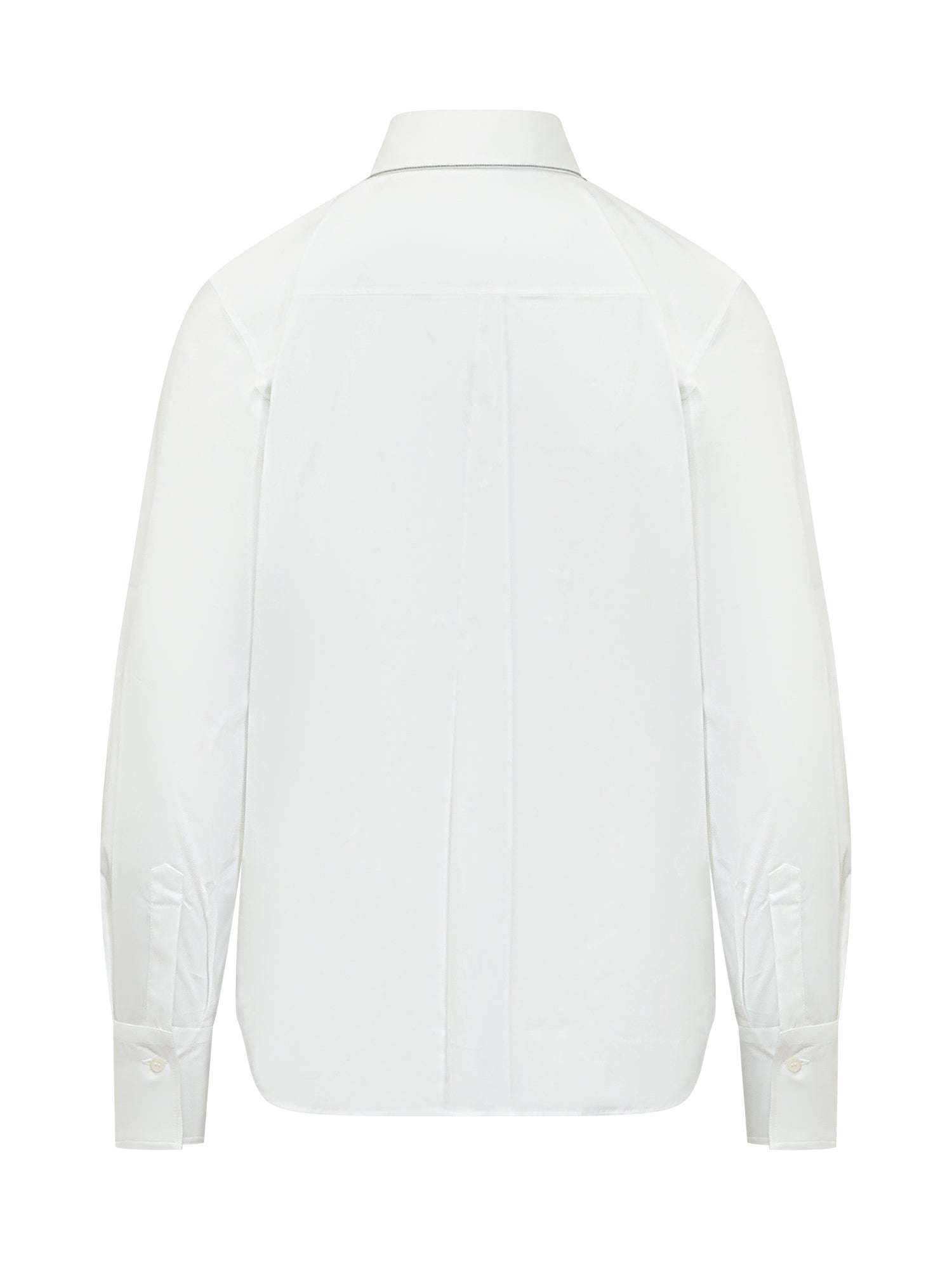Long sleeve shirt with classic collar, concealed button closure, adjustable cuffs, clean versatile silhouette.
