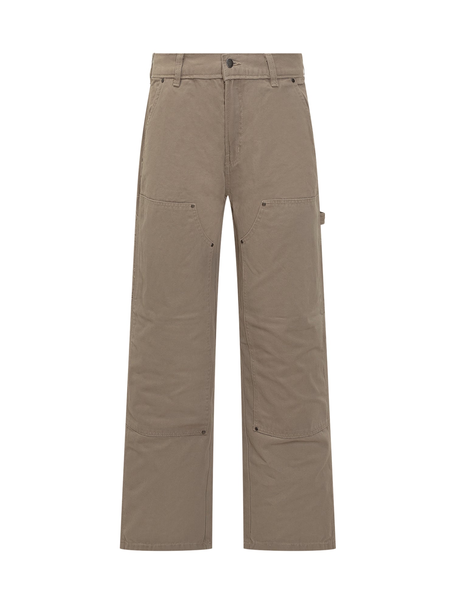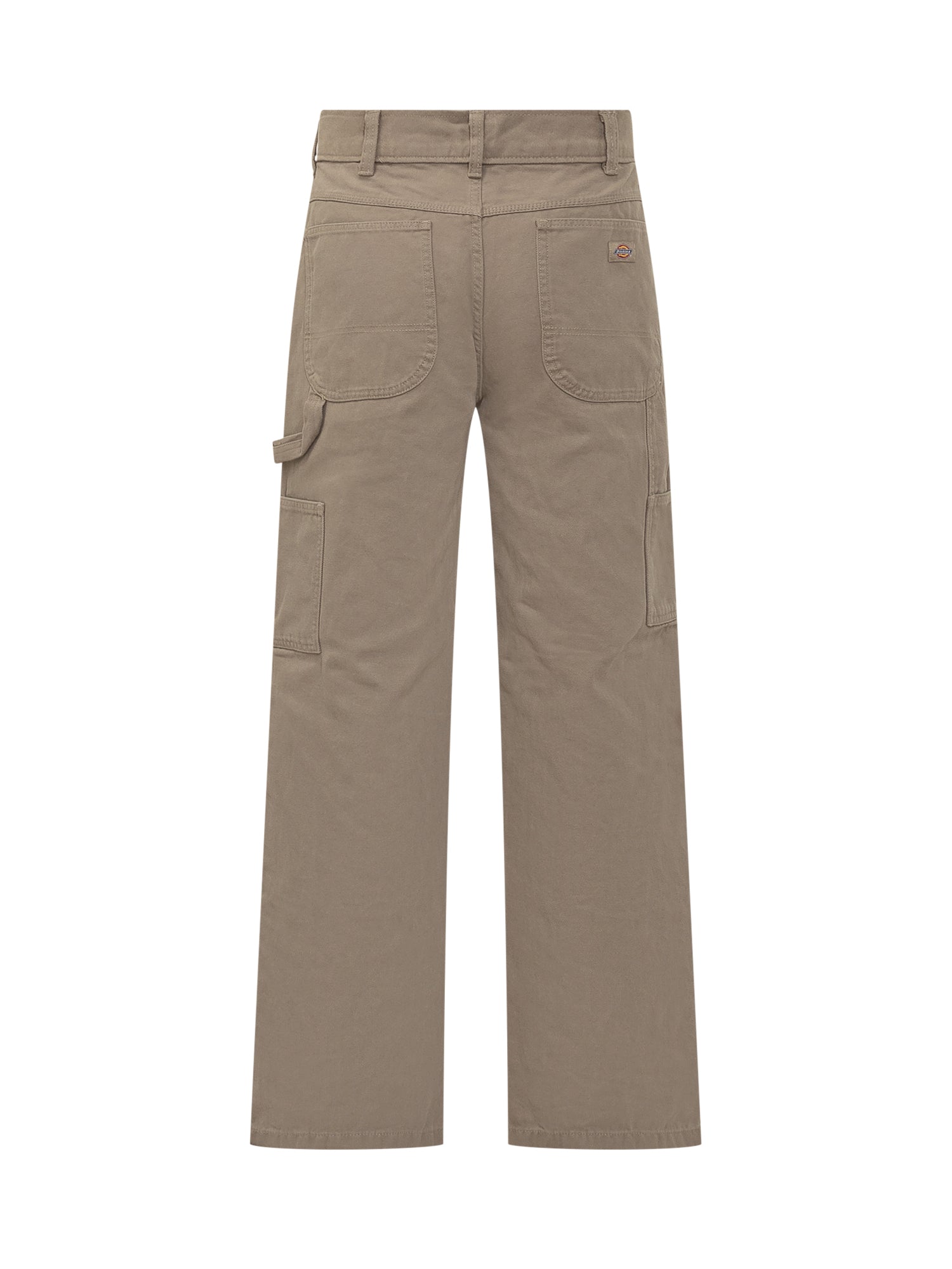 Dickies utility pants in taupe cotton with reinforced pockets and side loops.