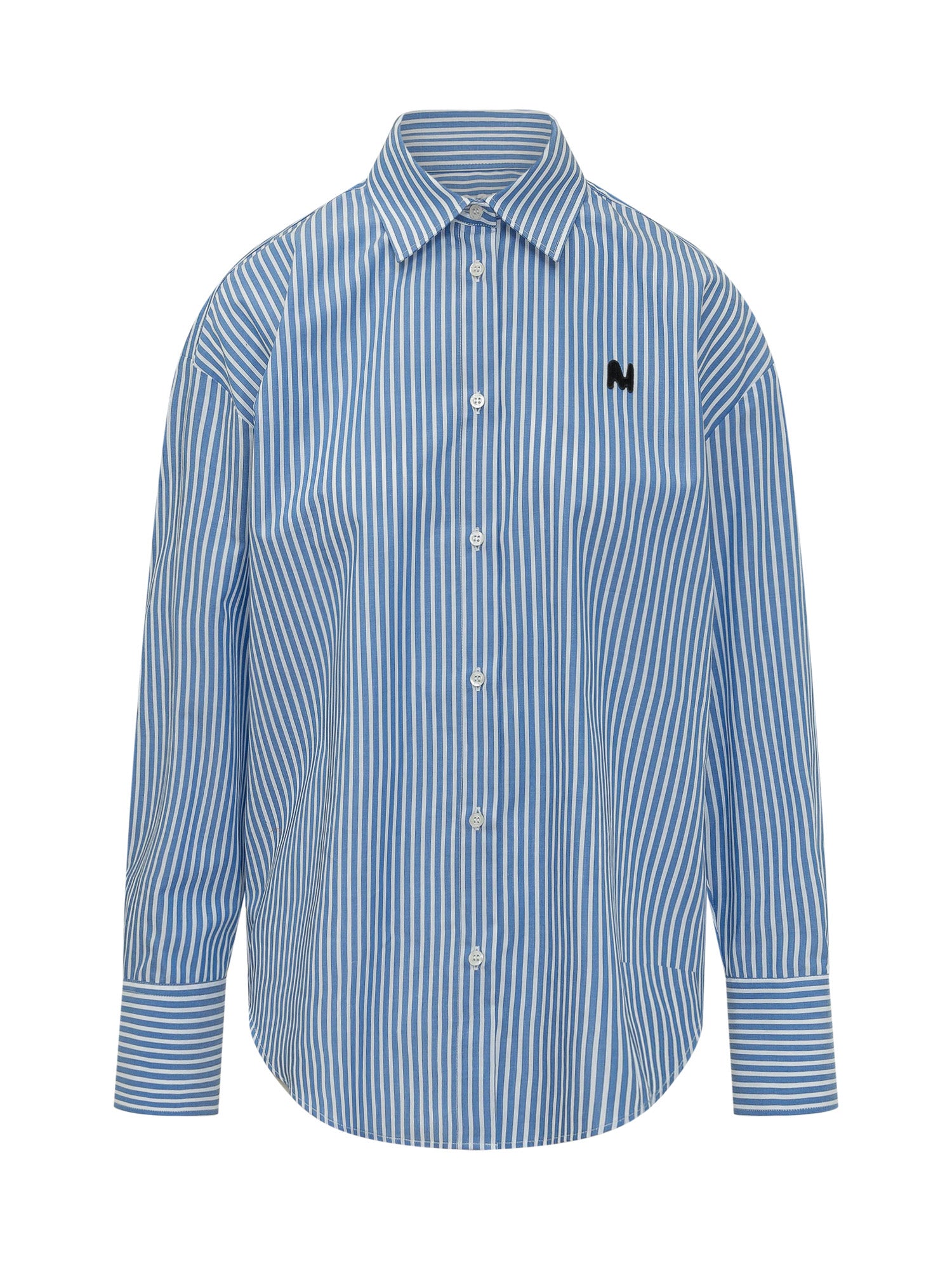 Striped cotton shirt with a classic collar and front button closure. Buttoned cuffs and a curved hem for a comfortable fit. Subtle chest embroidery.