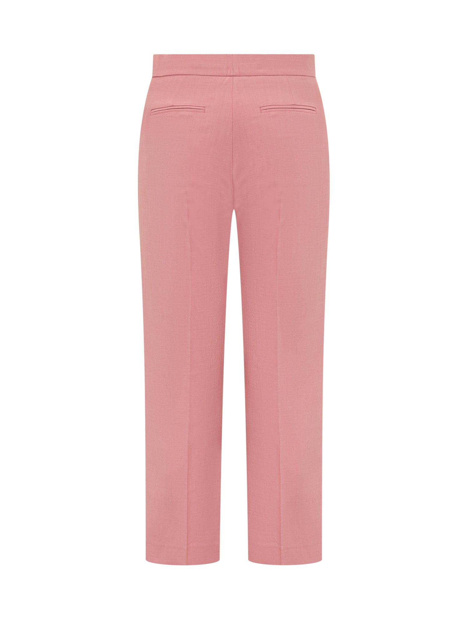 Long palazzo pants. Zipper and hook-and-eye closure. Four pockets.