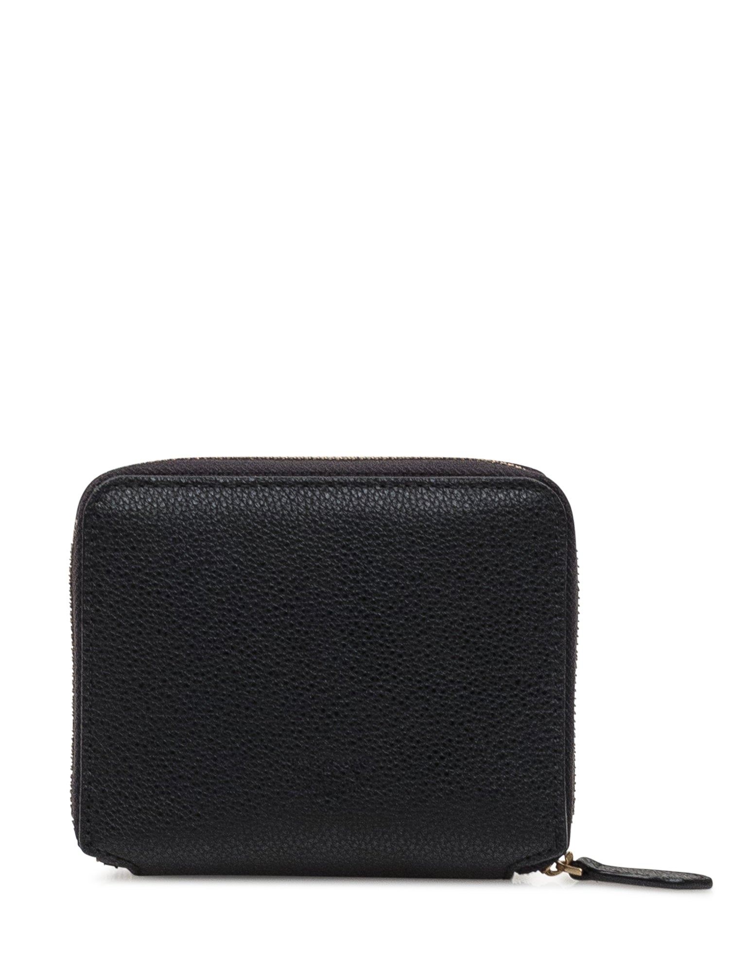 Black pebbled leather wallet by Pinko, Taylor model, featuring embroidered iconic logo on front and zip-around closure.