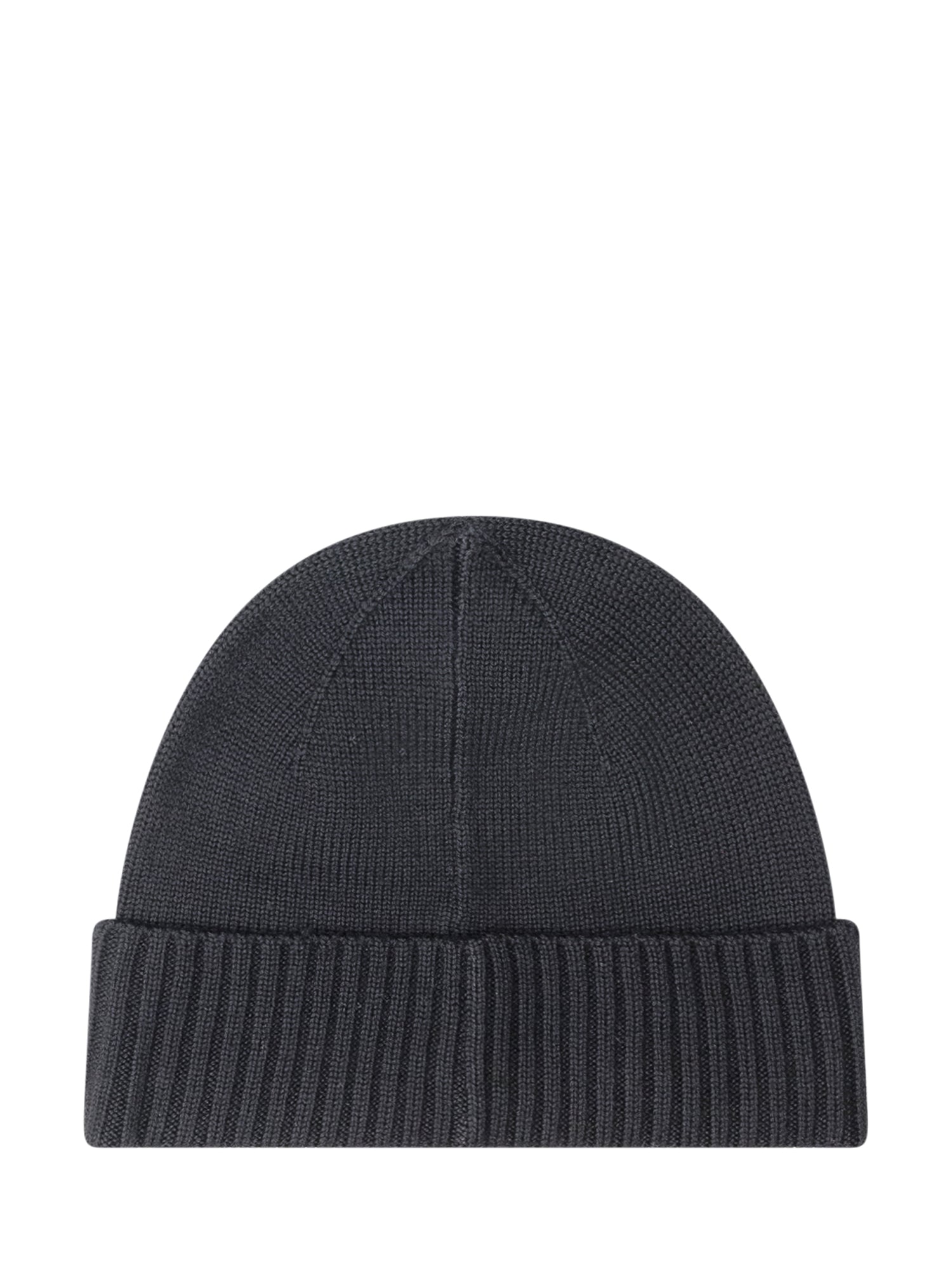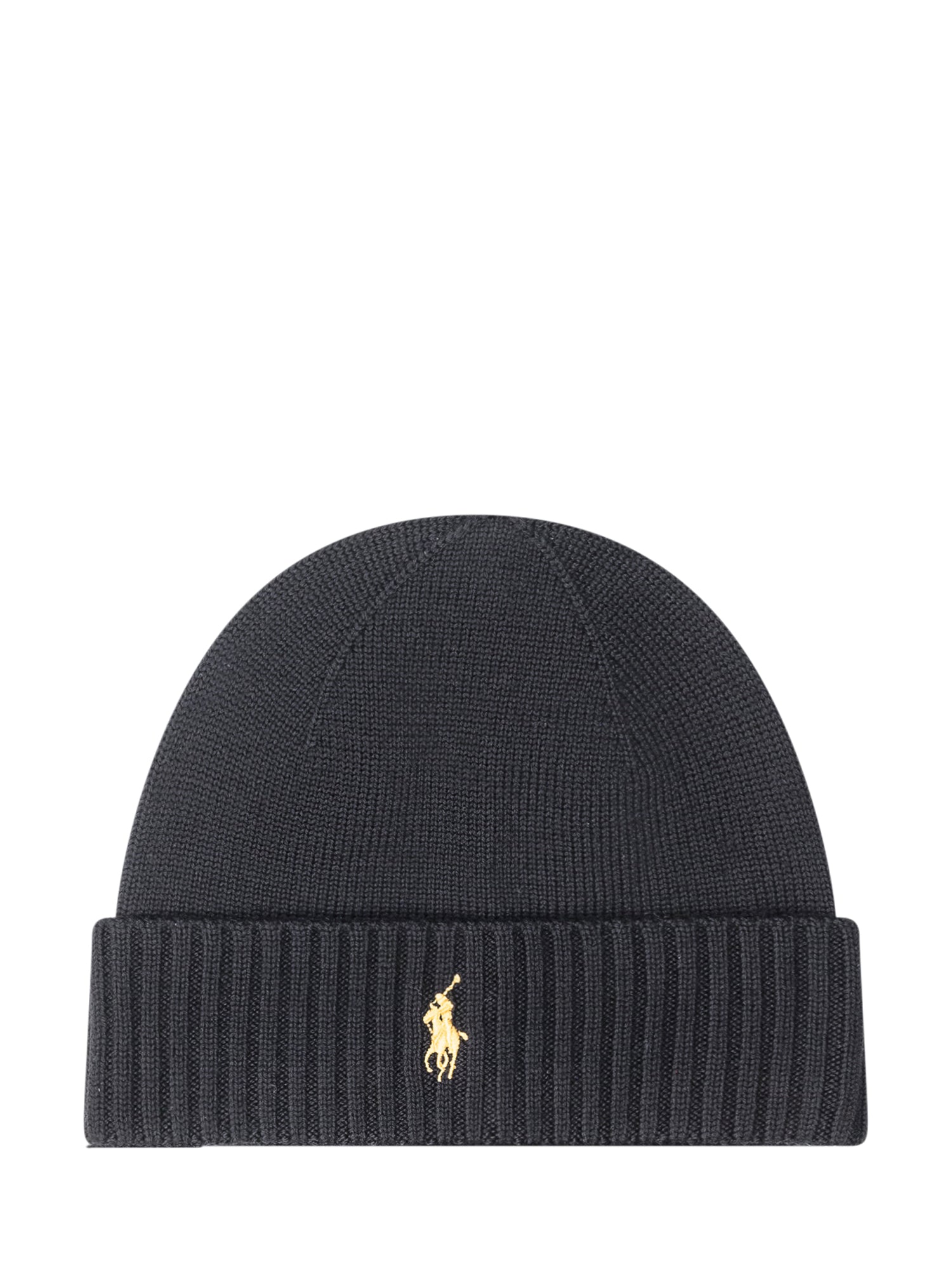 Polo Ralph Lauren black knit beanie featuring yellow embroidered logo.