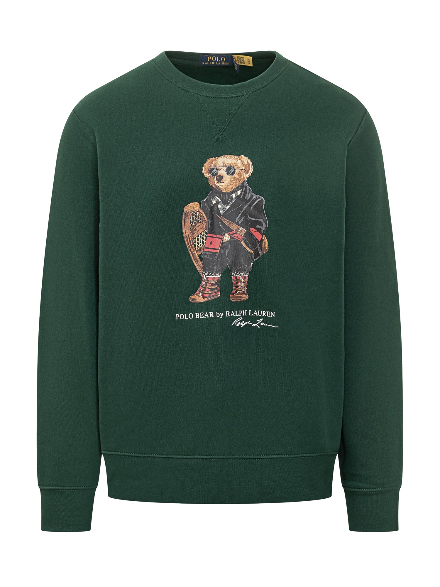 Polo Ralph Lauren green cotton sweatshirt with crew neck, long sleeves and iconic Polo Bear print on the front.