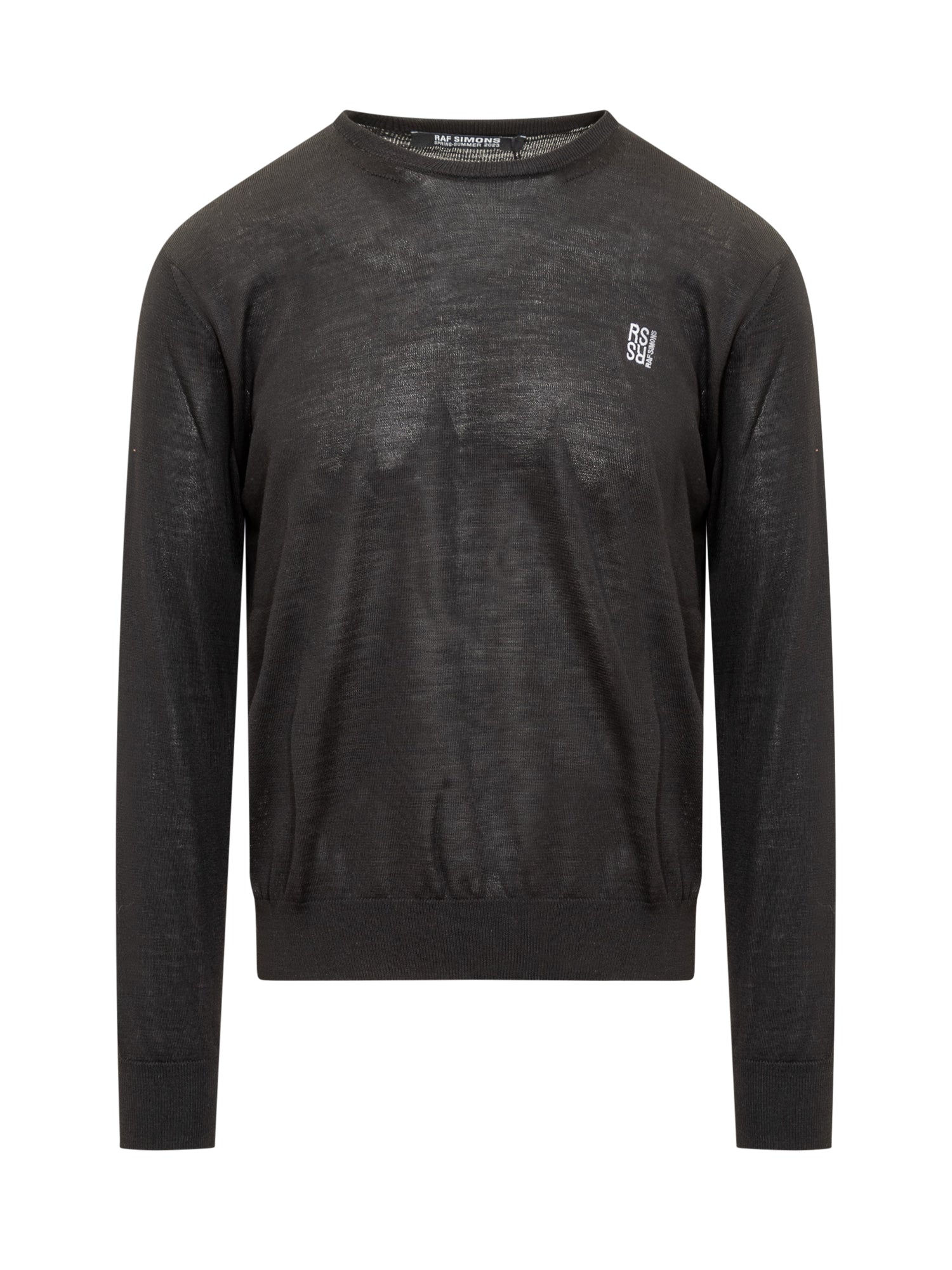 Long sleeve sweater. Crew neck. Ribbed collar, bottom and cuffs. Knitted. Patch logo on the front.