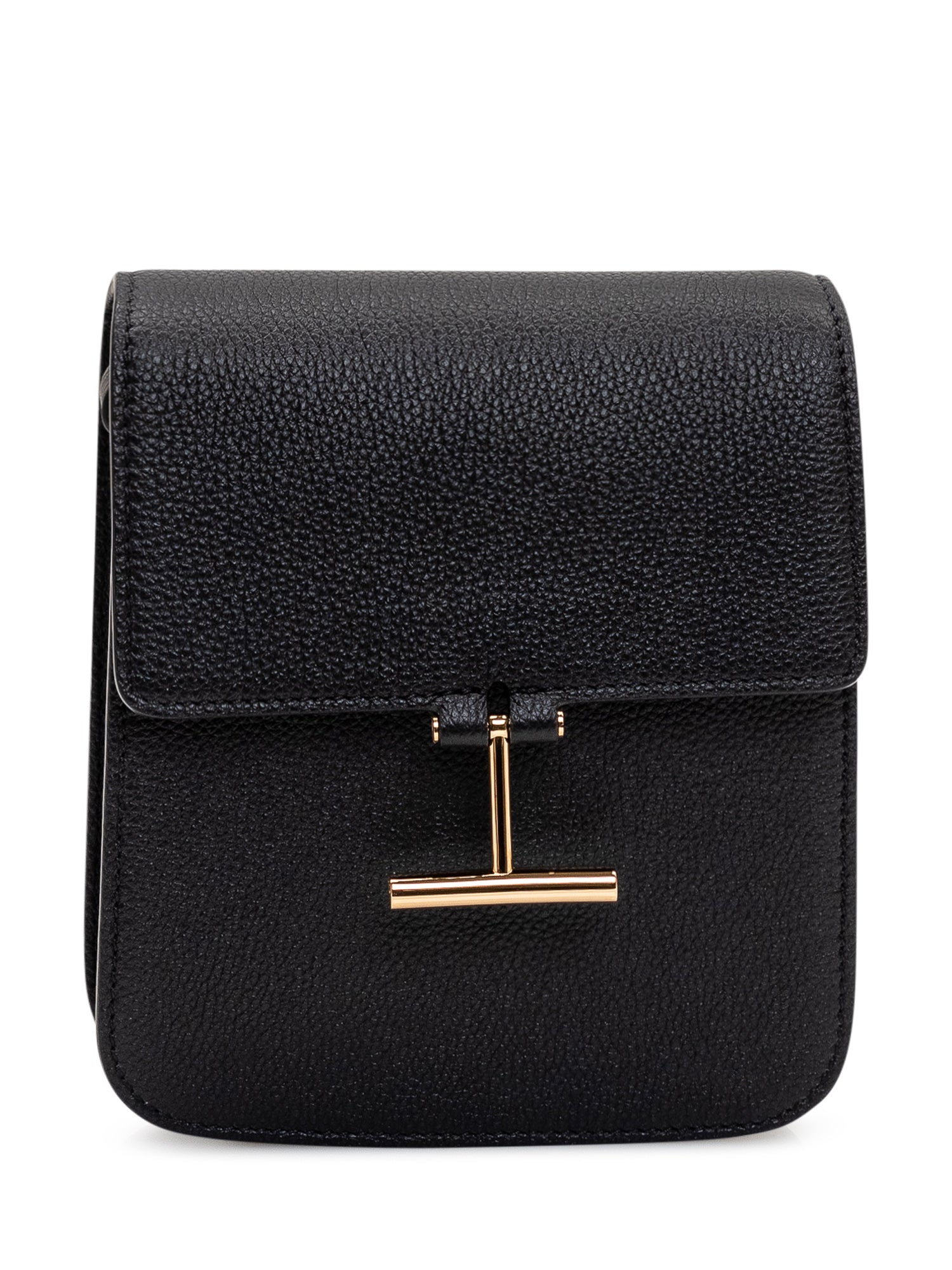 Crossbody bag in grained leather with a compact, clean design. Front flap with T-shaped metal closure and adjustable shoulder strap.Size: 6.30x7.09x1.77