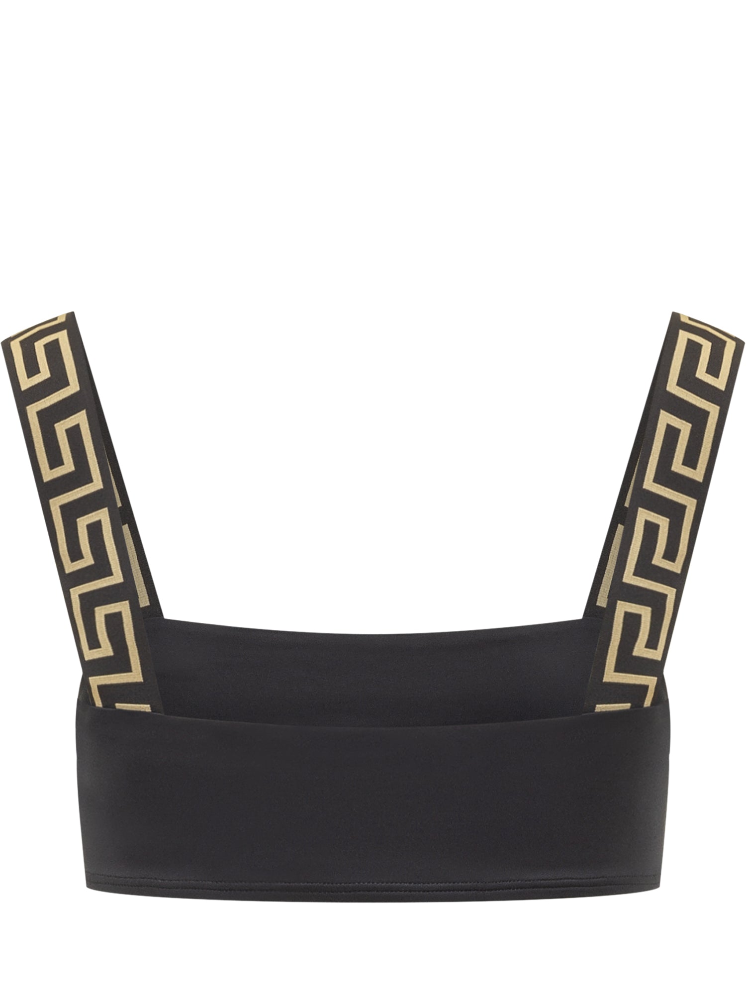 Bikini top in stretch lycra with straight neckline and wide contrast straps featuring iconic motif. Clean design and comfortable fit.