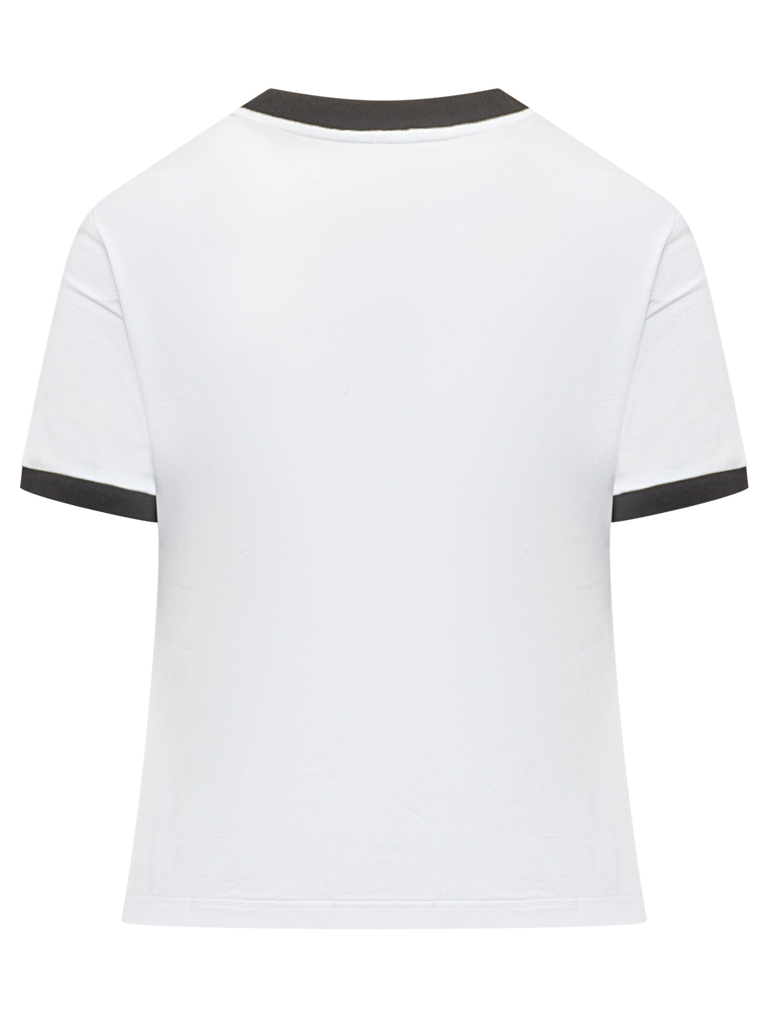 Lightweight jersey T-shirt featuring a regular fit and short sleeves. The clean design is enhanced by a front graphic detail and contrast trims on the neckline and sleeves.