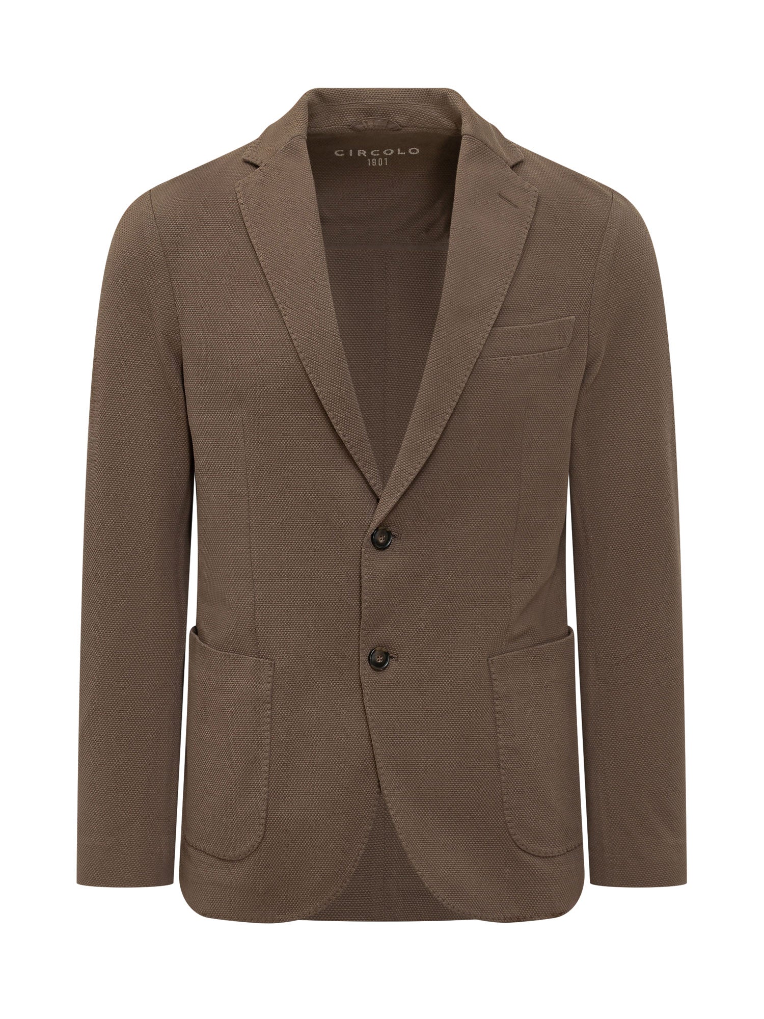 Single-breasted Oxford fabric jacket with classic lapels and patch pockets. Regular line.