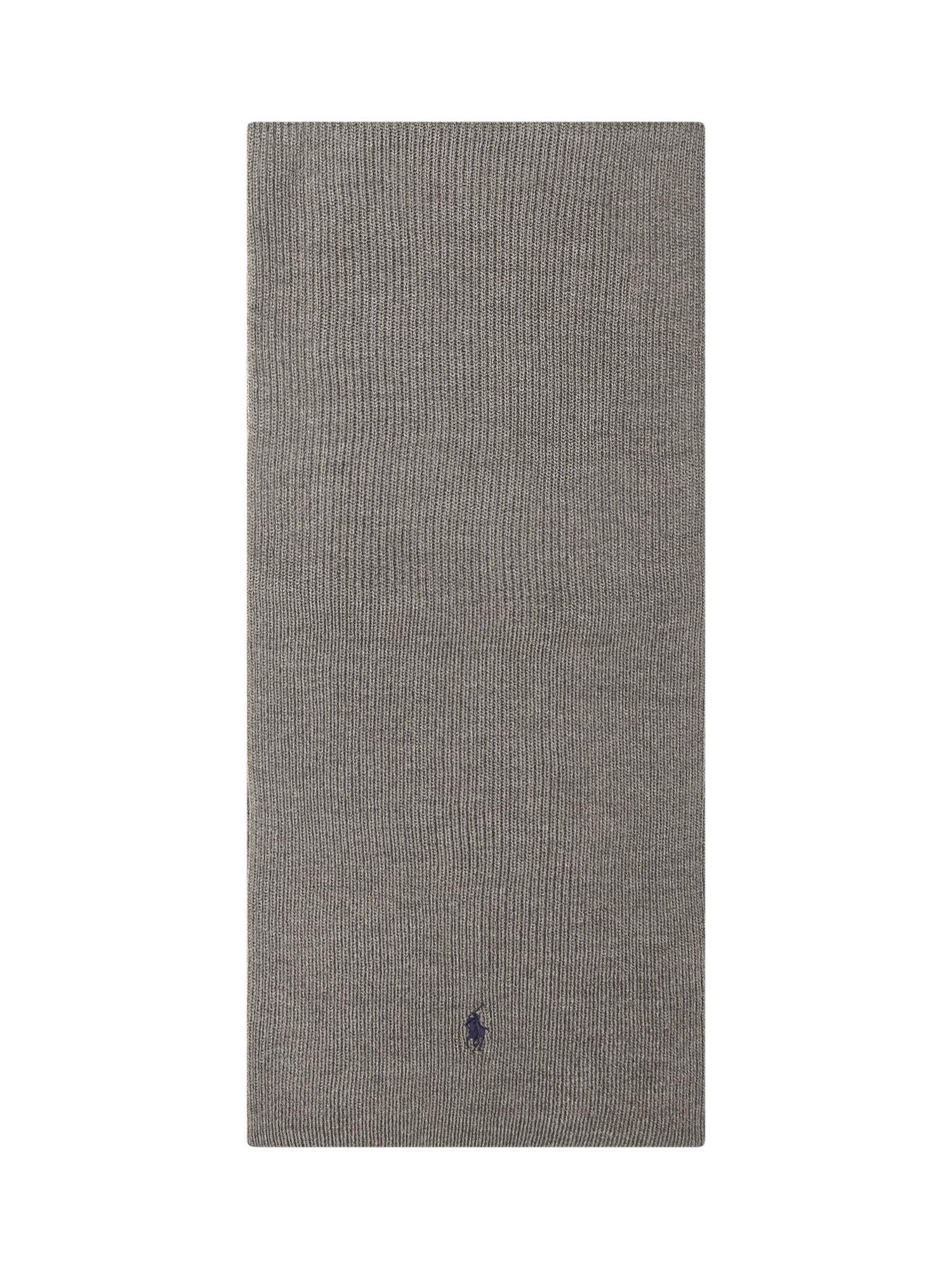 Polo Ralph Lauren grey knit scarf featuring the iconic navy embroidered logo.