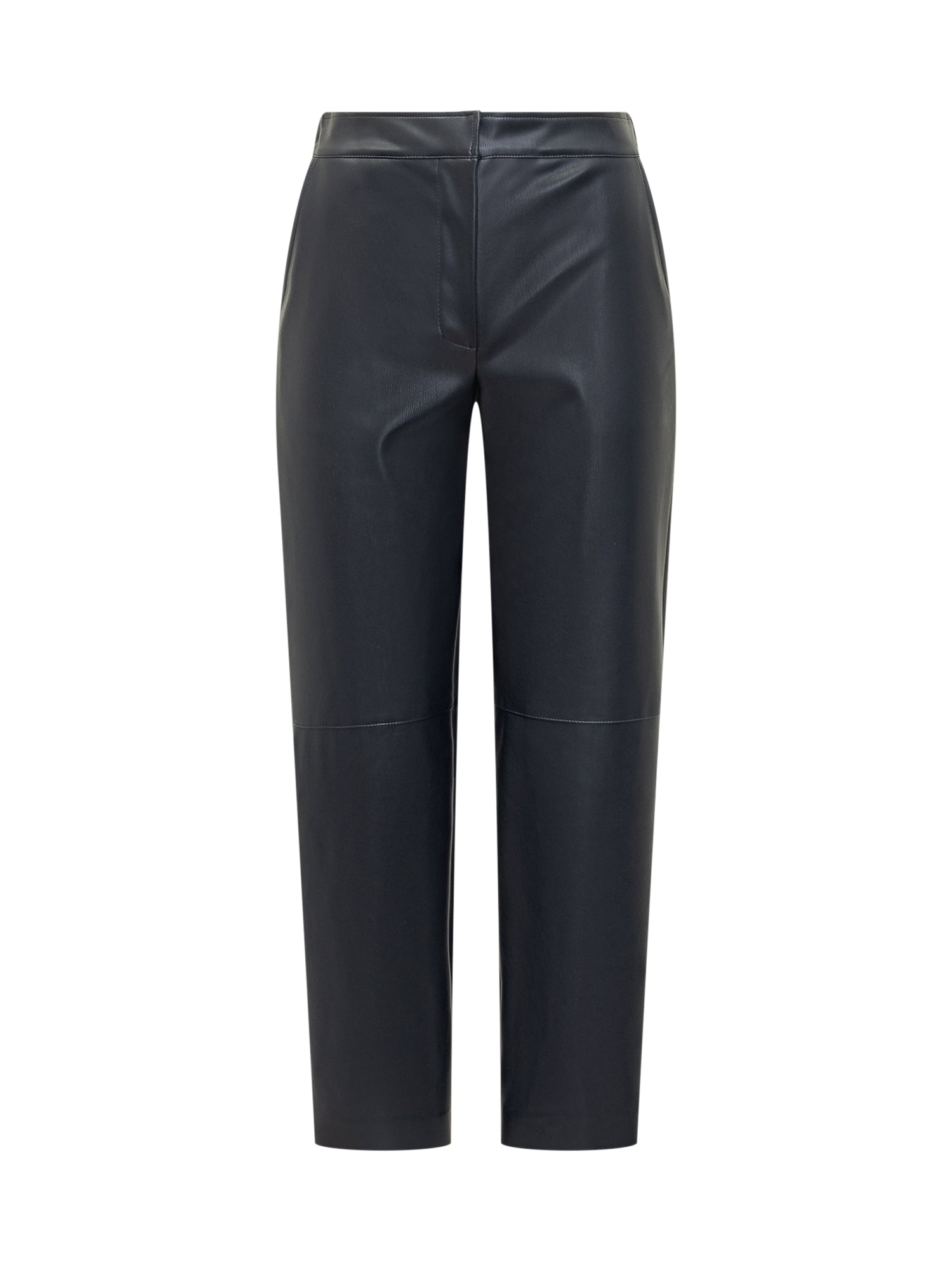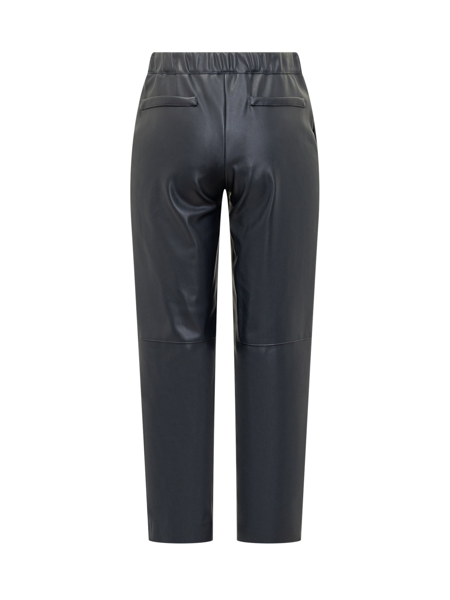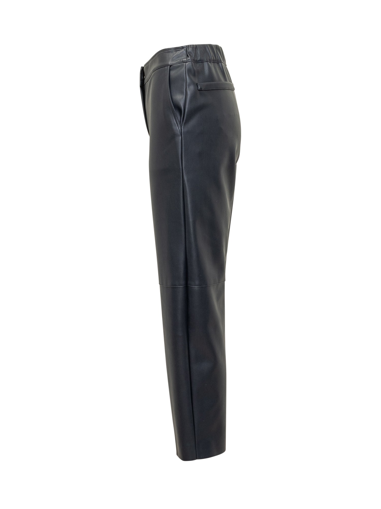 Alpha Studio black faux leather pants with button and zip closure. Straight fit and clean design.