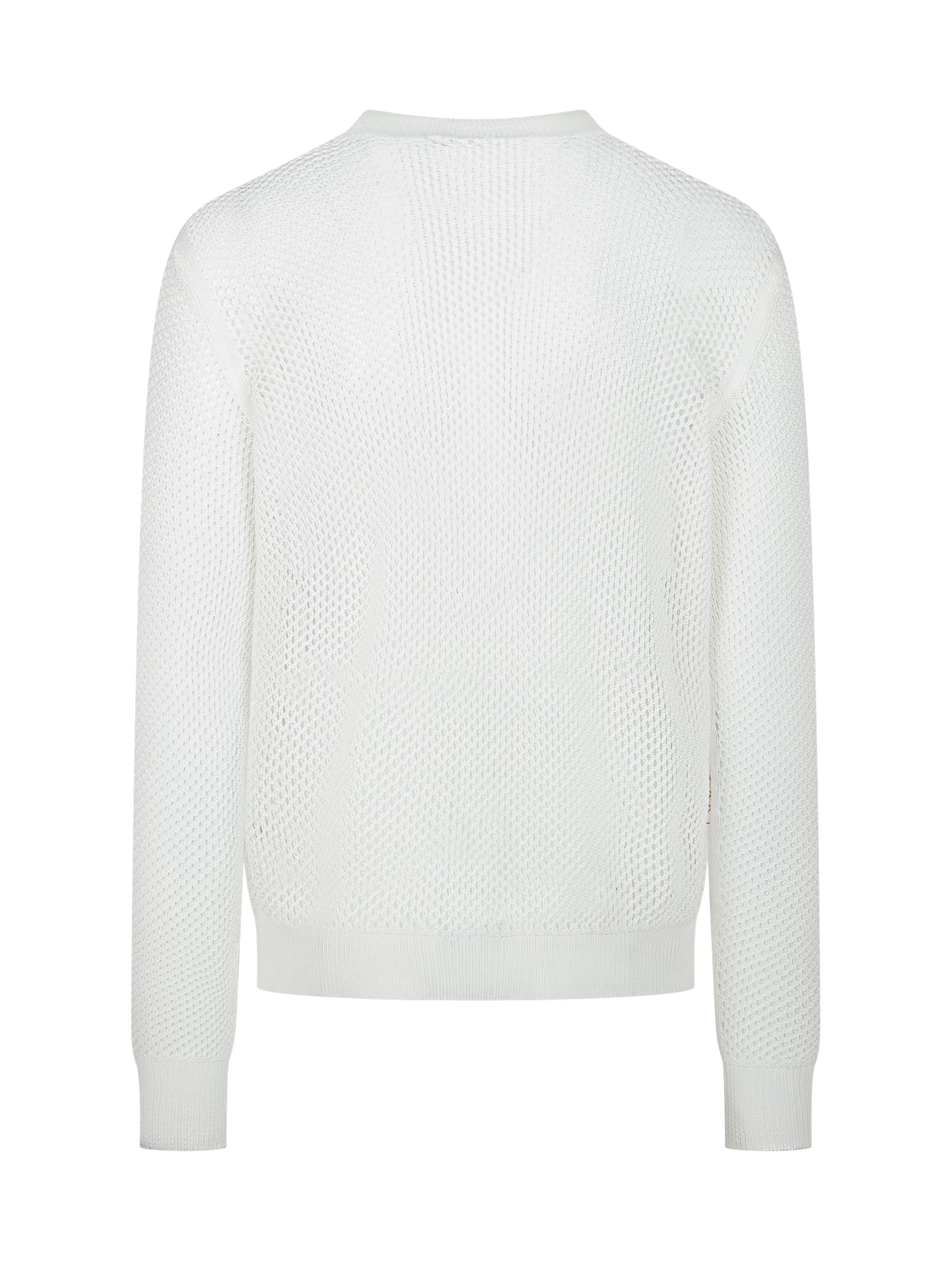Perforated knit. Crew neck. Long sleeves. Collar, hem and ribbed cuffs. Palm embroidery on the front.
