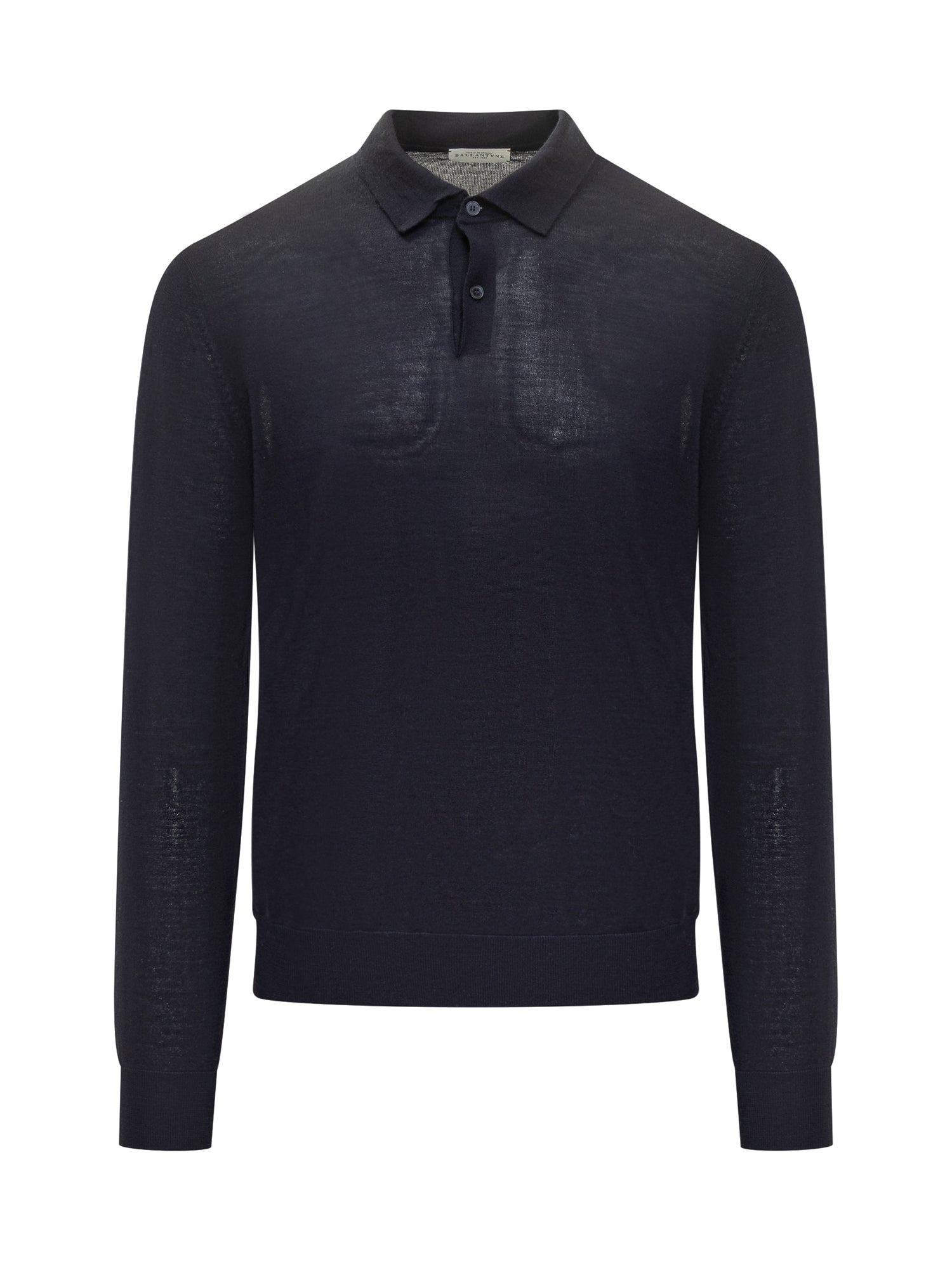 Ballantyne polo crafted from pure blue wool, featuring long sleeves and a three-button closure.
