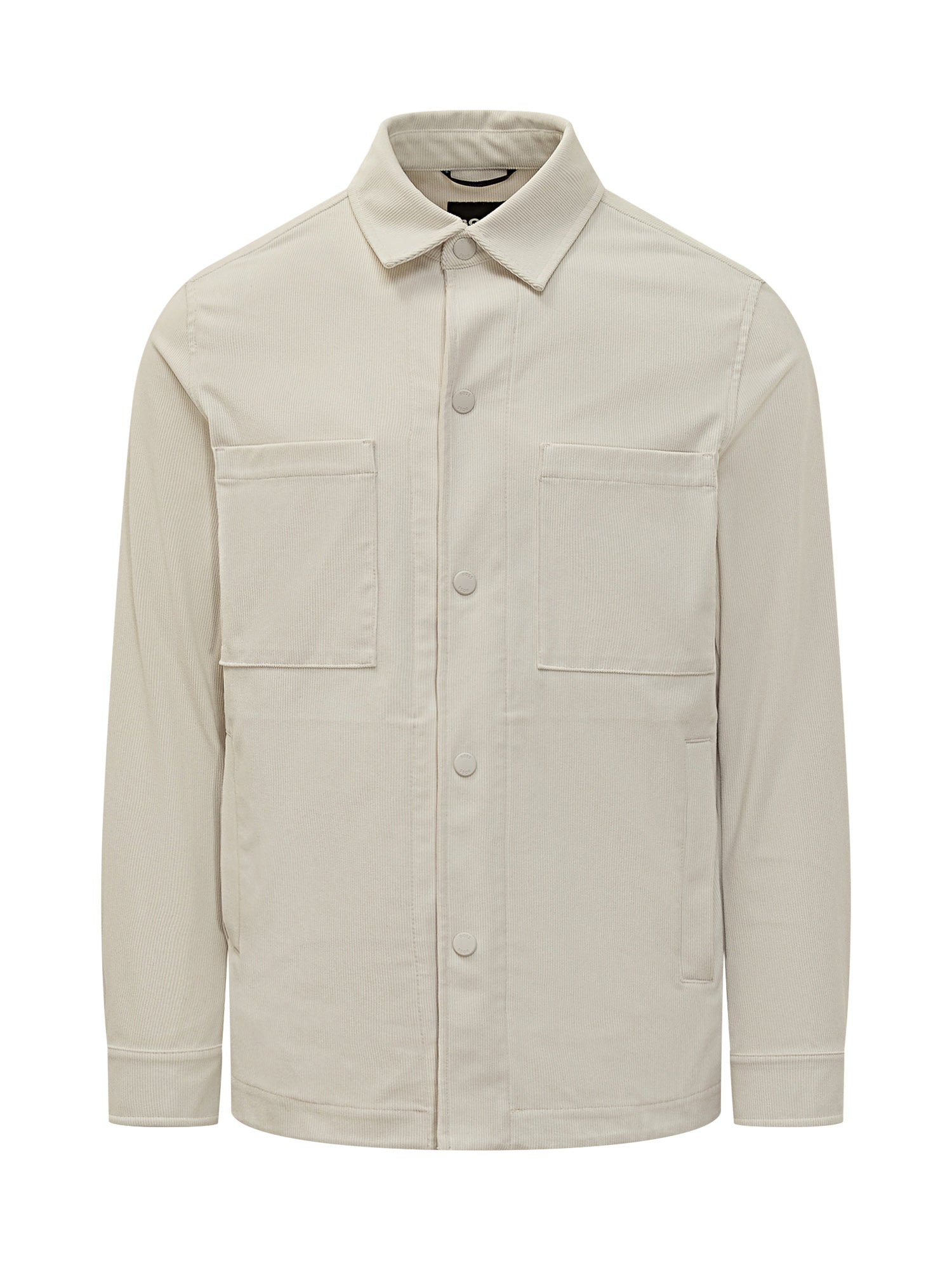 Boss beige cotton safari jacket with front patch pockets and snap-button closure.