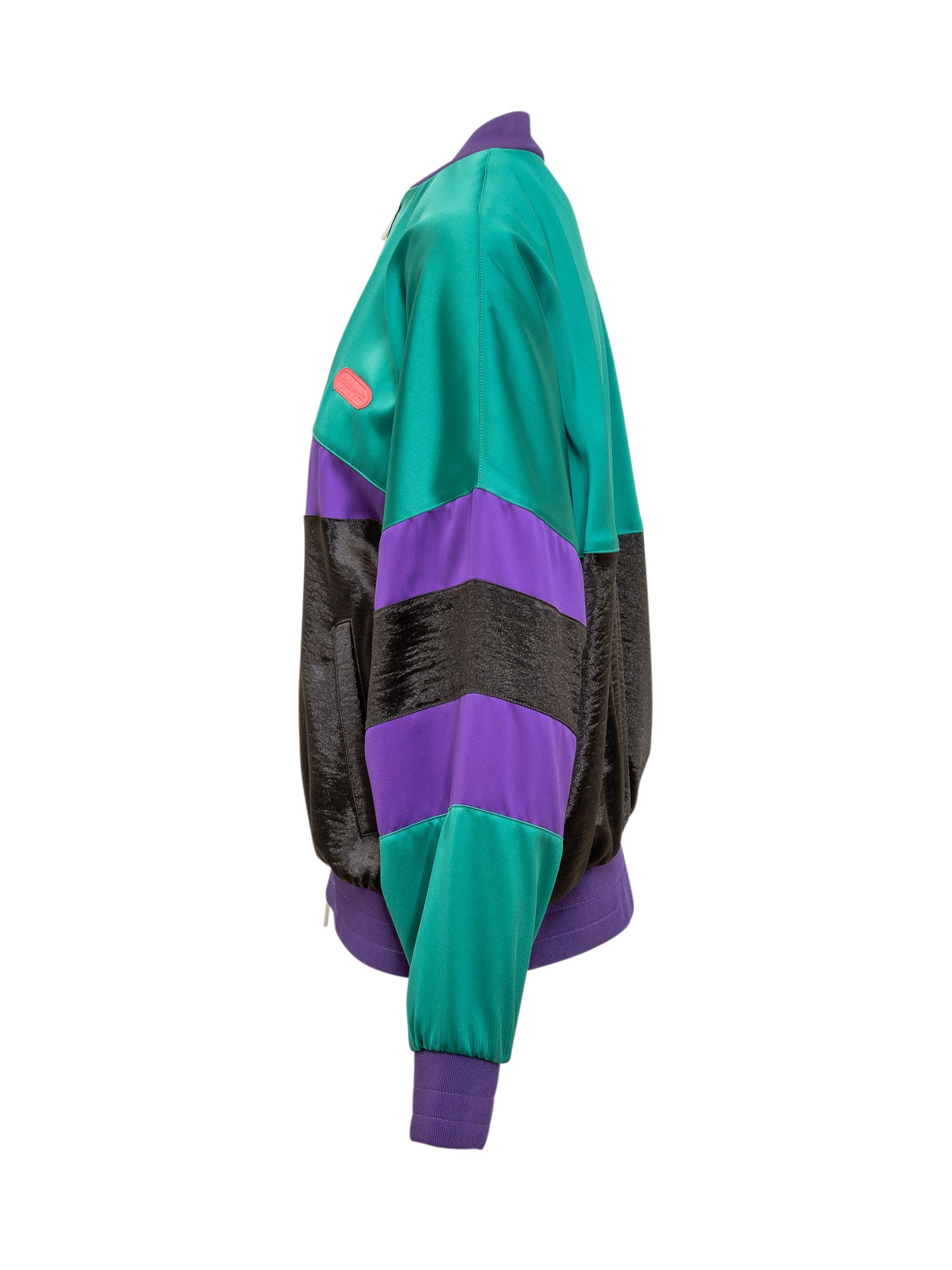 Sweatshirt with zip closure. Two pockets. Logo patch on the chest. Block pattern.