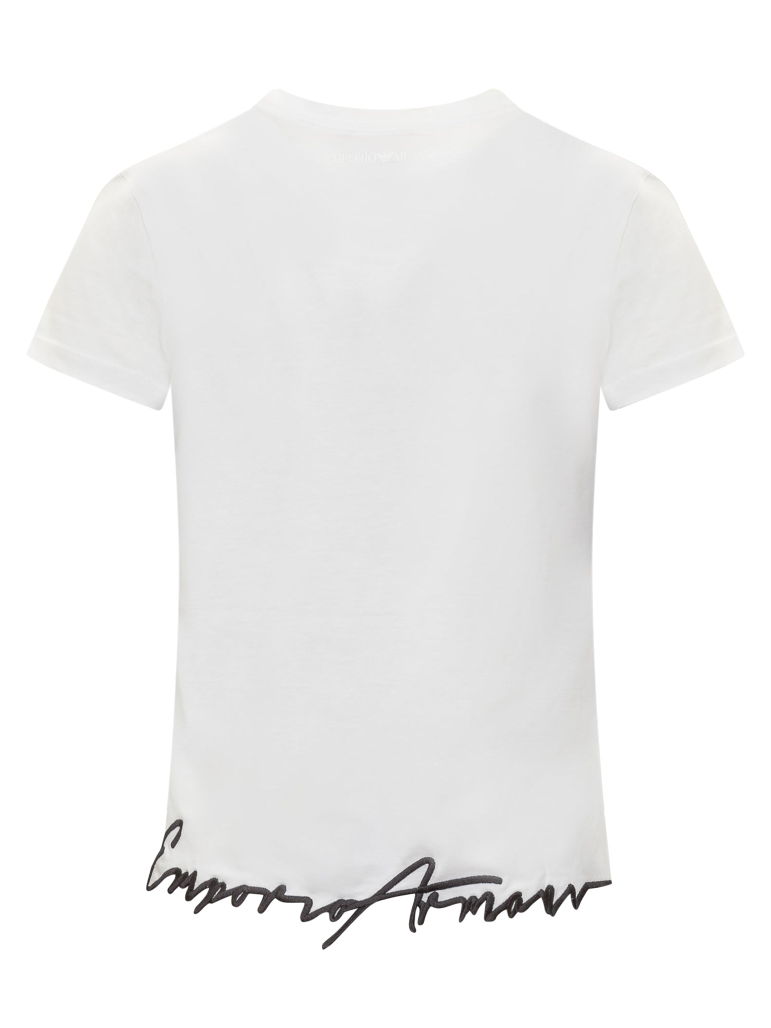 Short-sleeved T-shirt. Crew neck. Irregular bottom with embroidered Emporio Armani detail.
