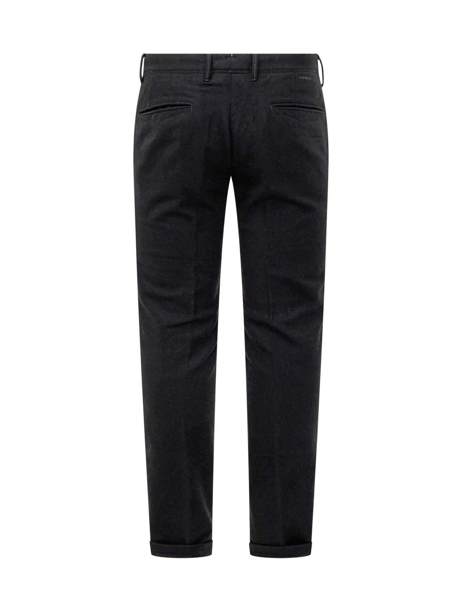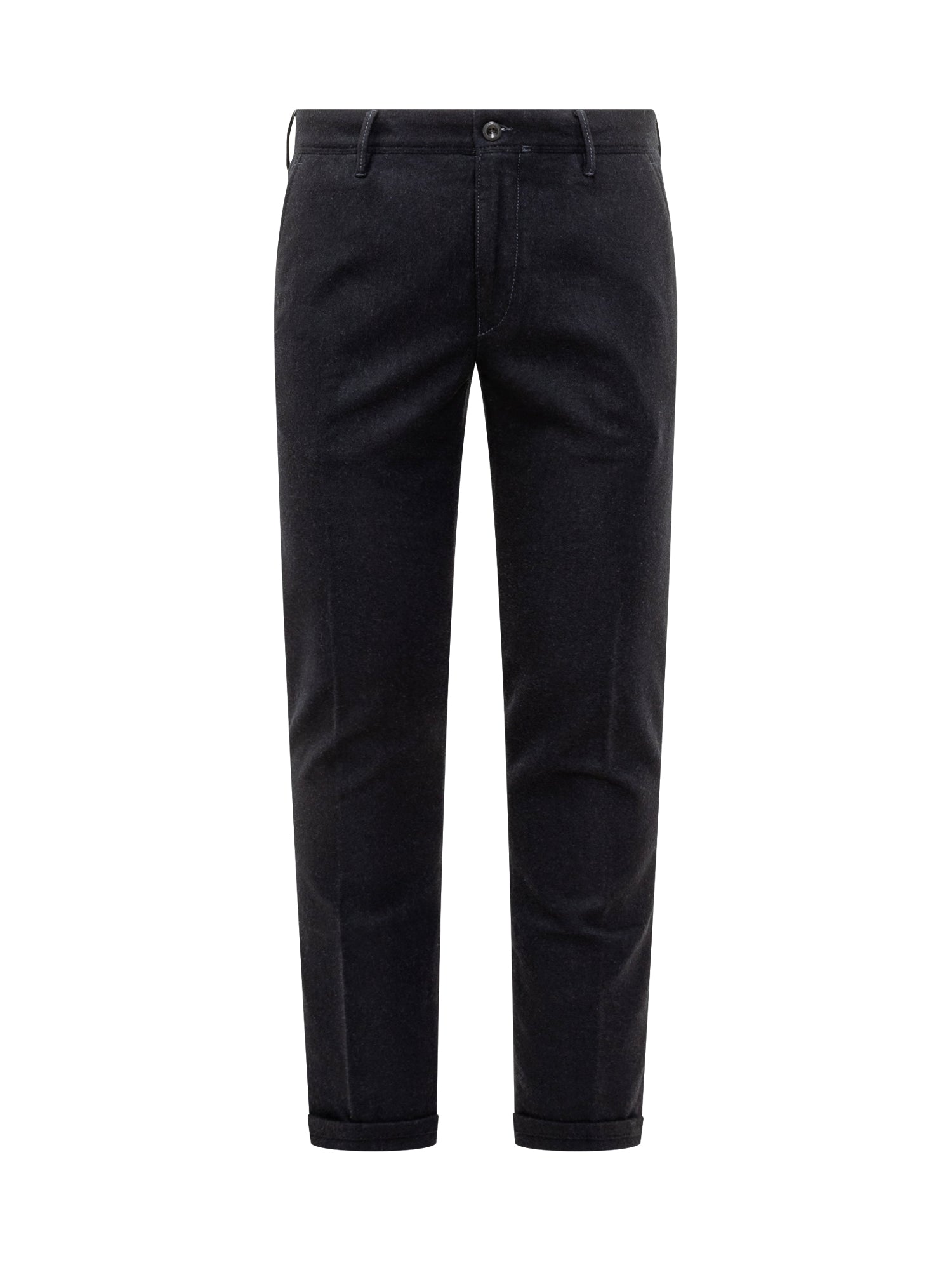 Incotex blue wool trousers with button and zip closure, side pockets and cuffed hem.