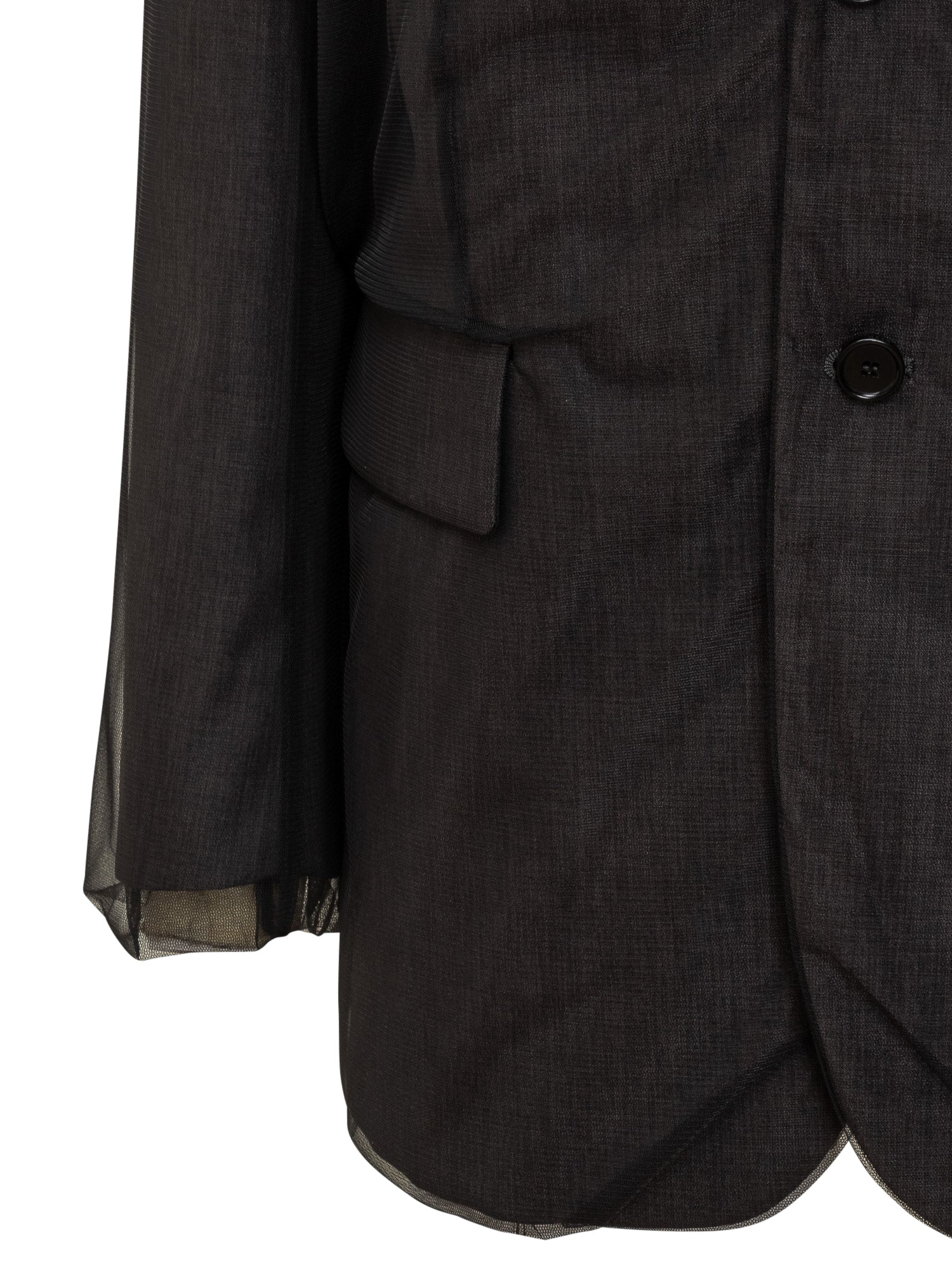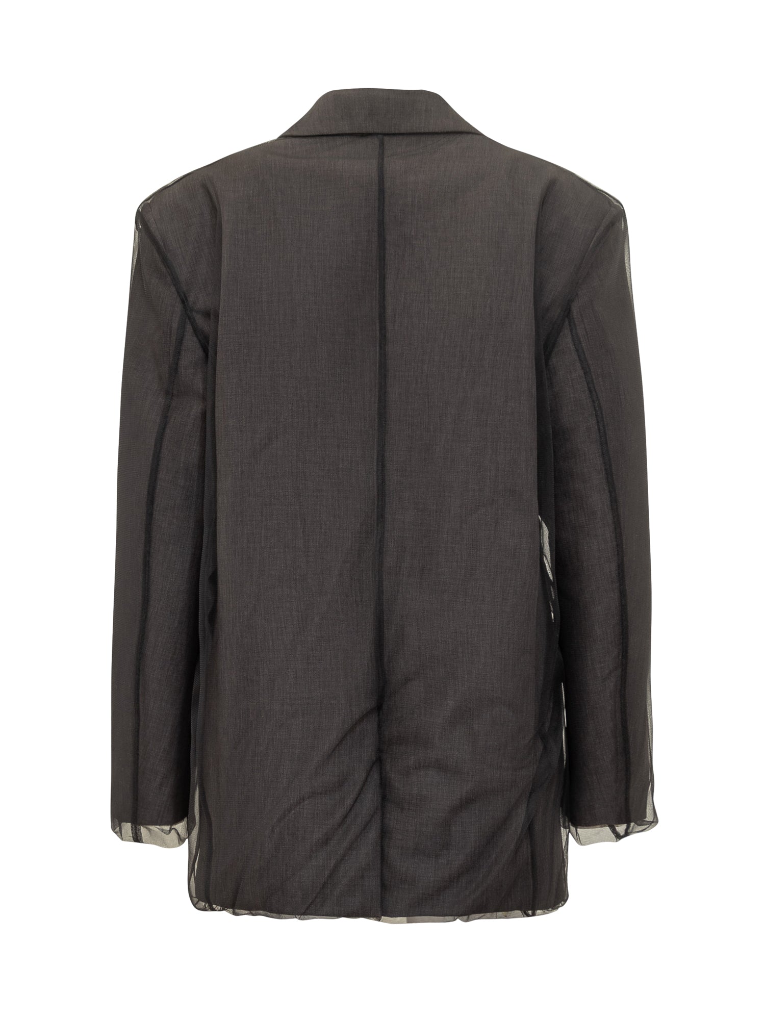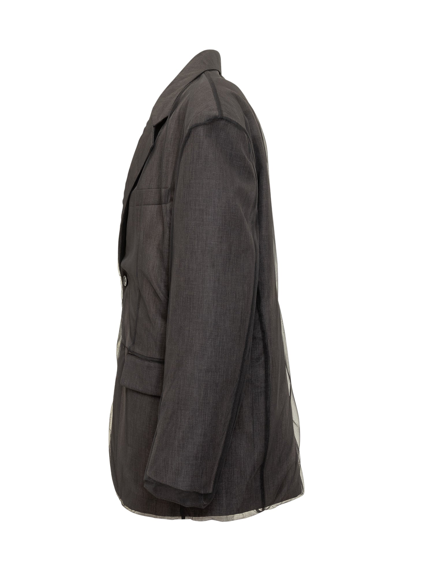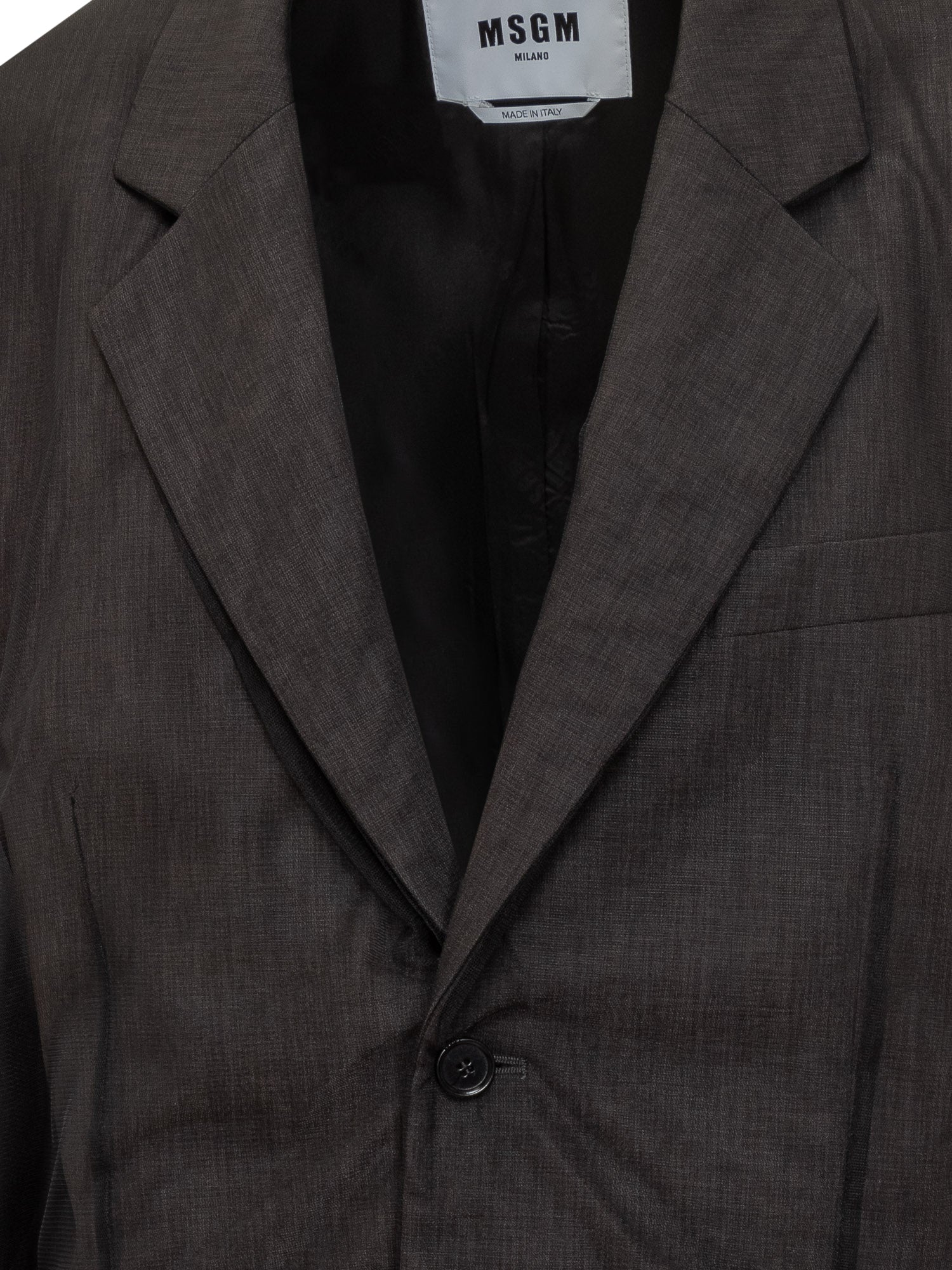 MSGM oversized grey blazer featuring classic lapels and two-button closure.