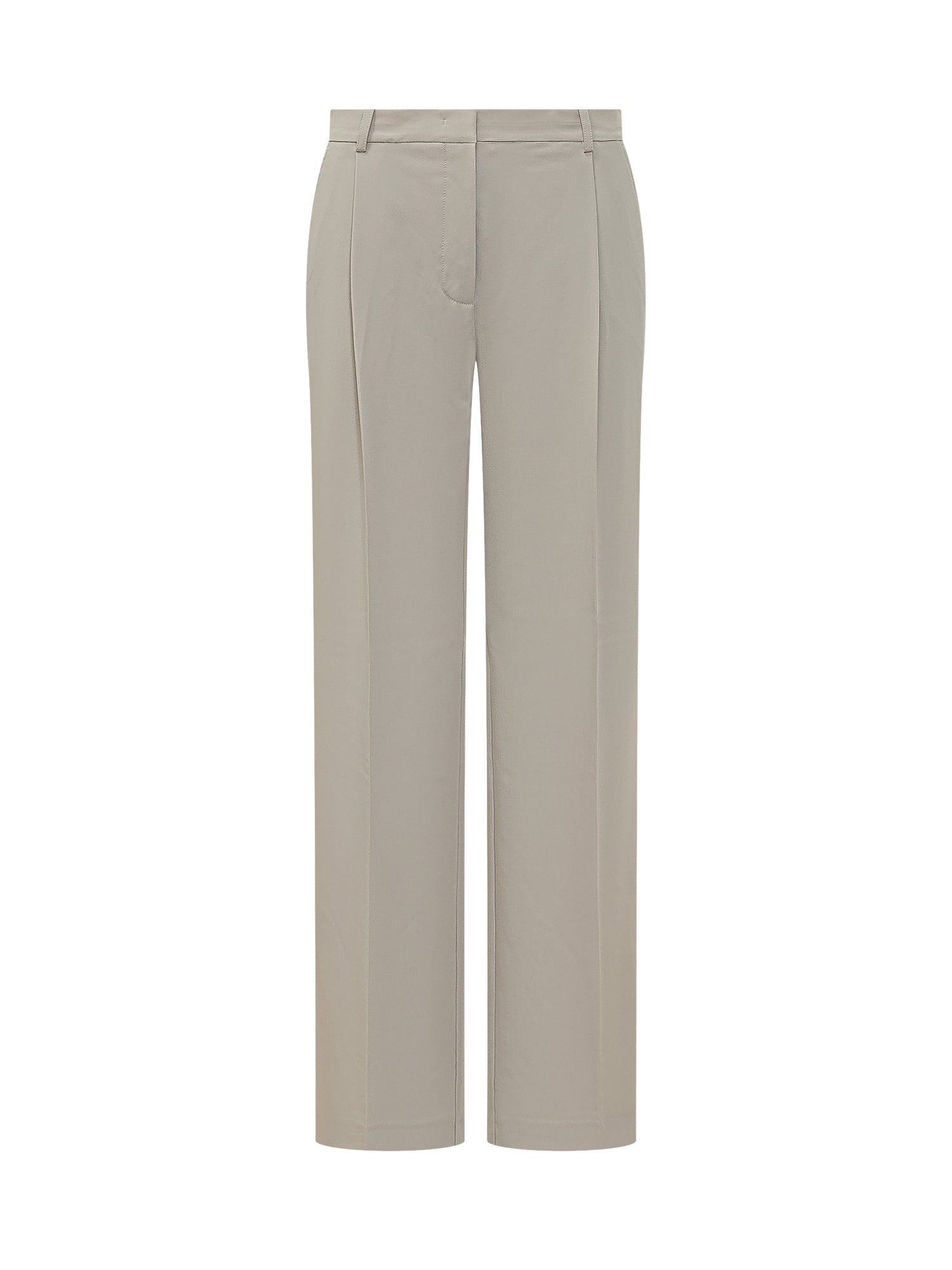 Womens high waist trousers, long straight leg, belt loops at waist, clean line and regular fit. Zip, buttons and hook closure.
